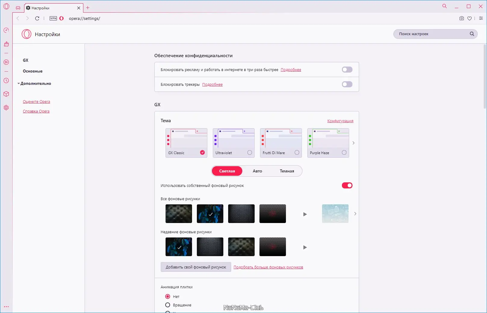 Работа с Opera GX