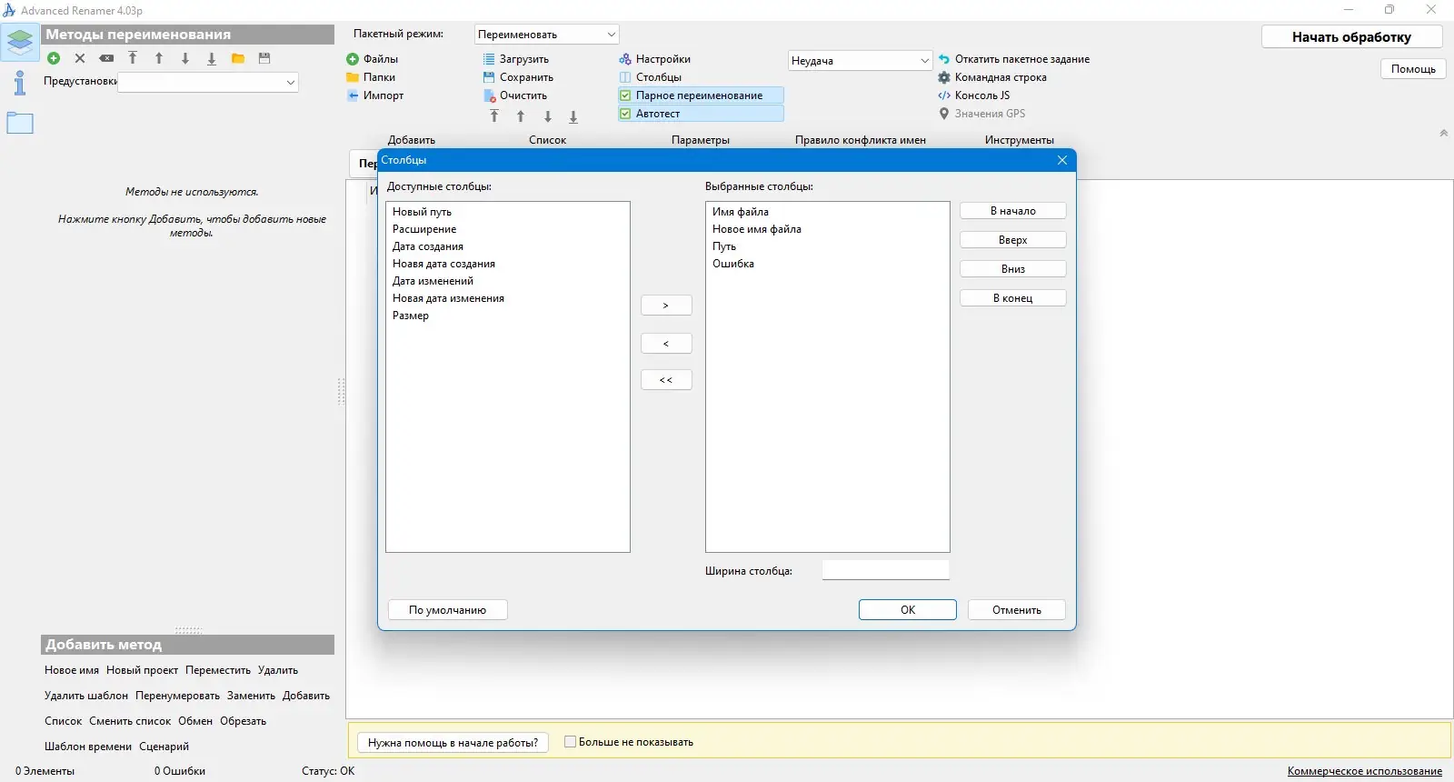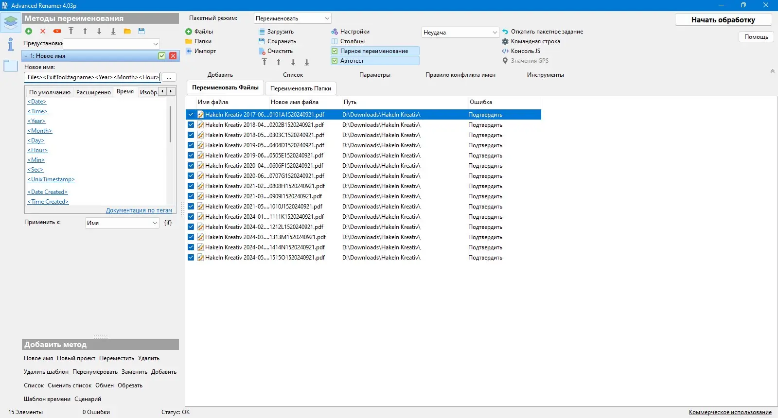 - Программа поддерживает одновременное применение нескольких методов переименования в одном задании.