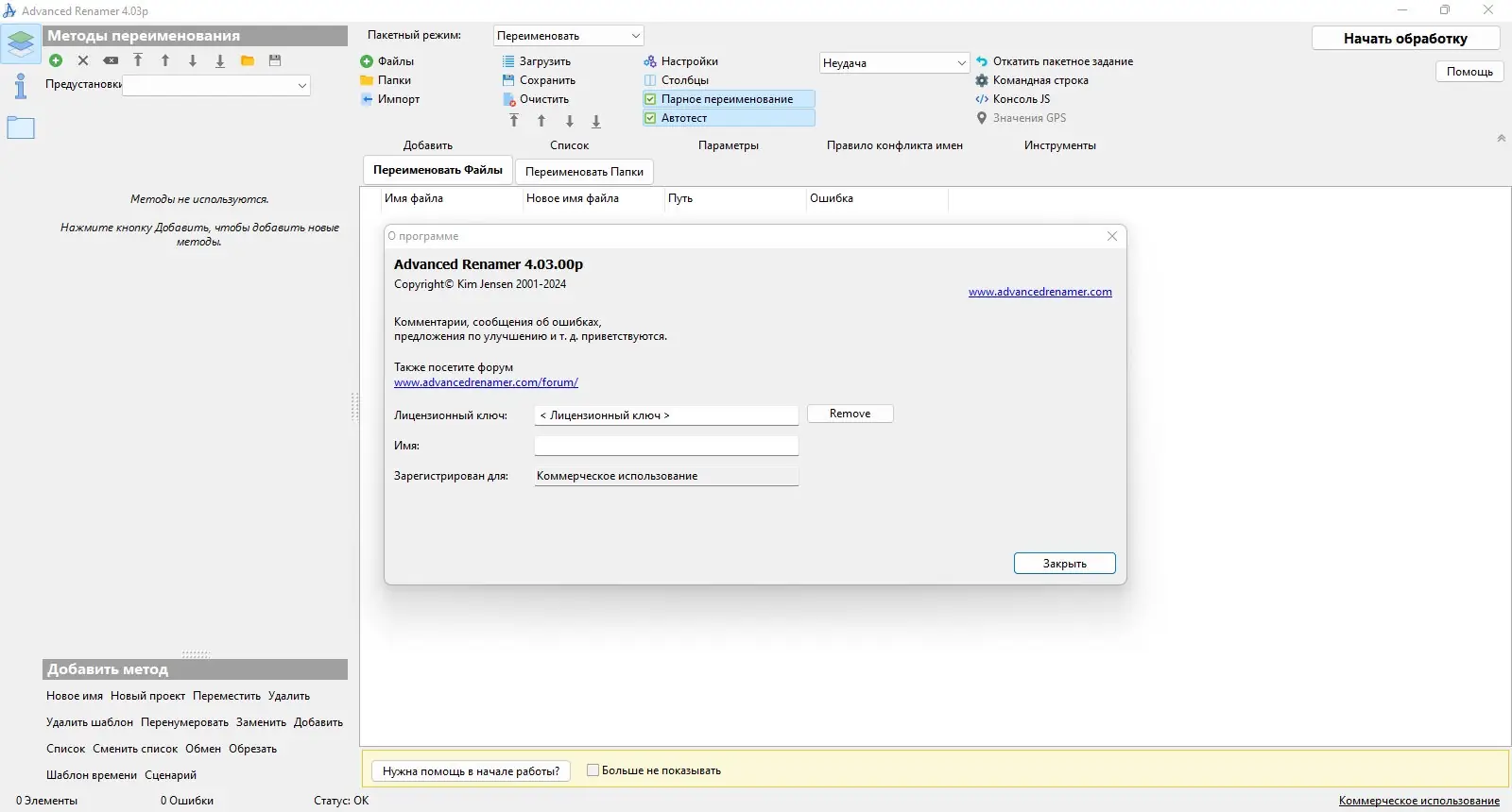 - Поддержка более десяти различных методов переименования, включая работу с тегами и метаданными.