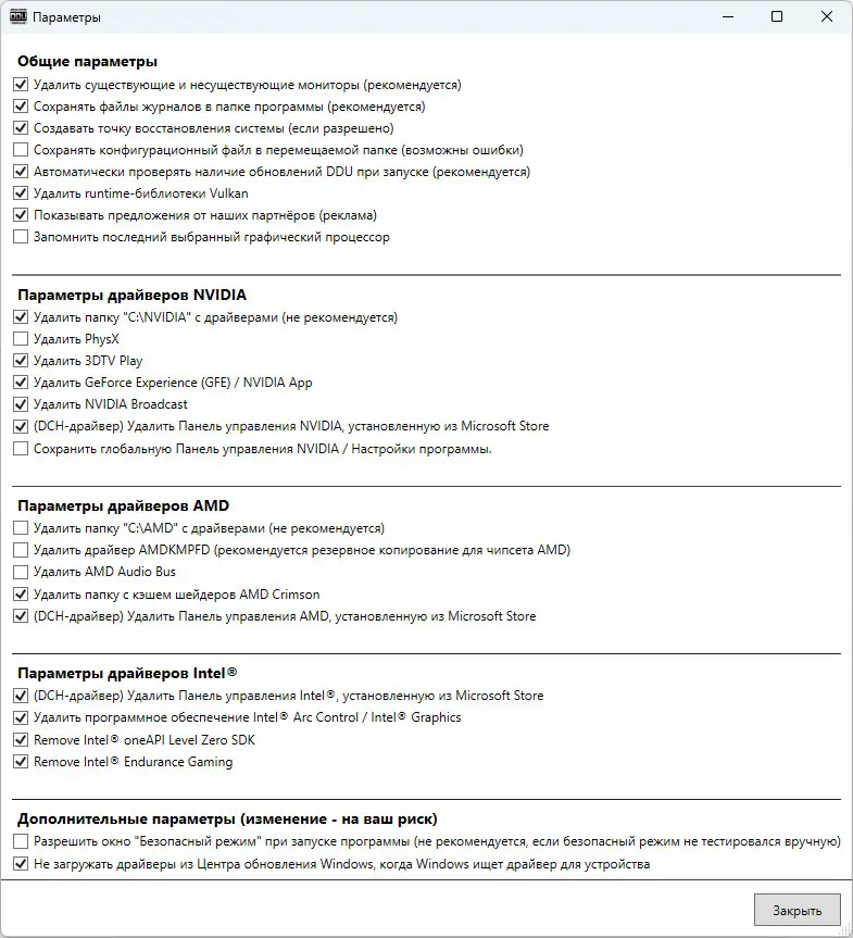 Display Driver Uninstaller — это мощная утилита для полного удаления драйверов видеокарт и аудиоустройств из операционной системы. Программа эффективно удаляет остатки драйверов AMD, NVIDIA, Intel, а также компоненты Realtek и Sound Blaster, включая файлы, папки и записи в реестре Windows. После очистки система возвращается в состояние, аналогичное чистой установке, что особенно полезно при смене видеокарты или возникновении конфликтов драйверов.
