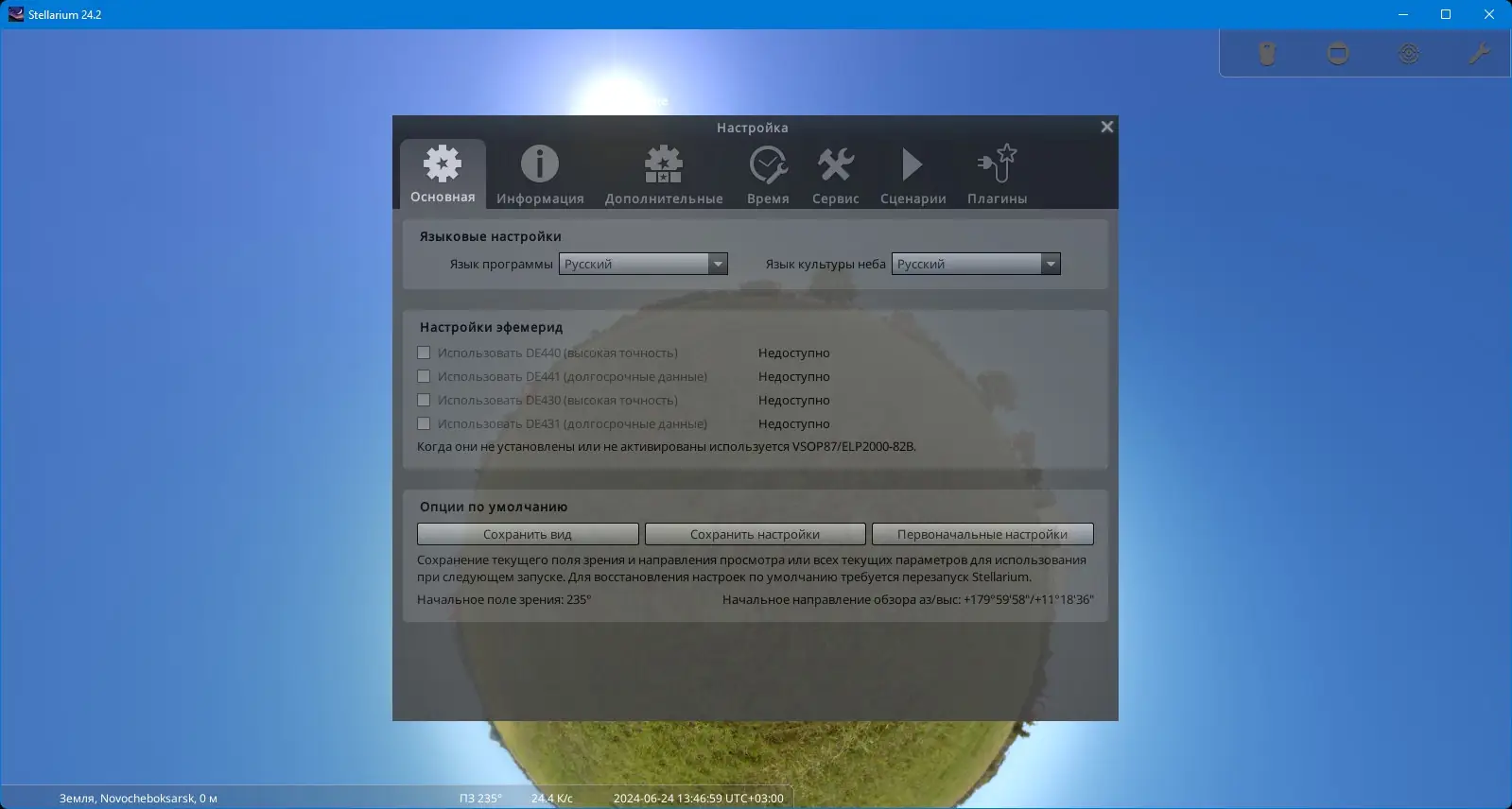- Программа предлагает различные режимы времени — от реального до ускоренного — и поддерживает несколько типов проекций, включая «рыбий глаз» для планетариев.