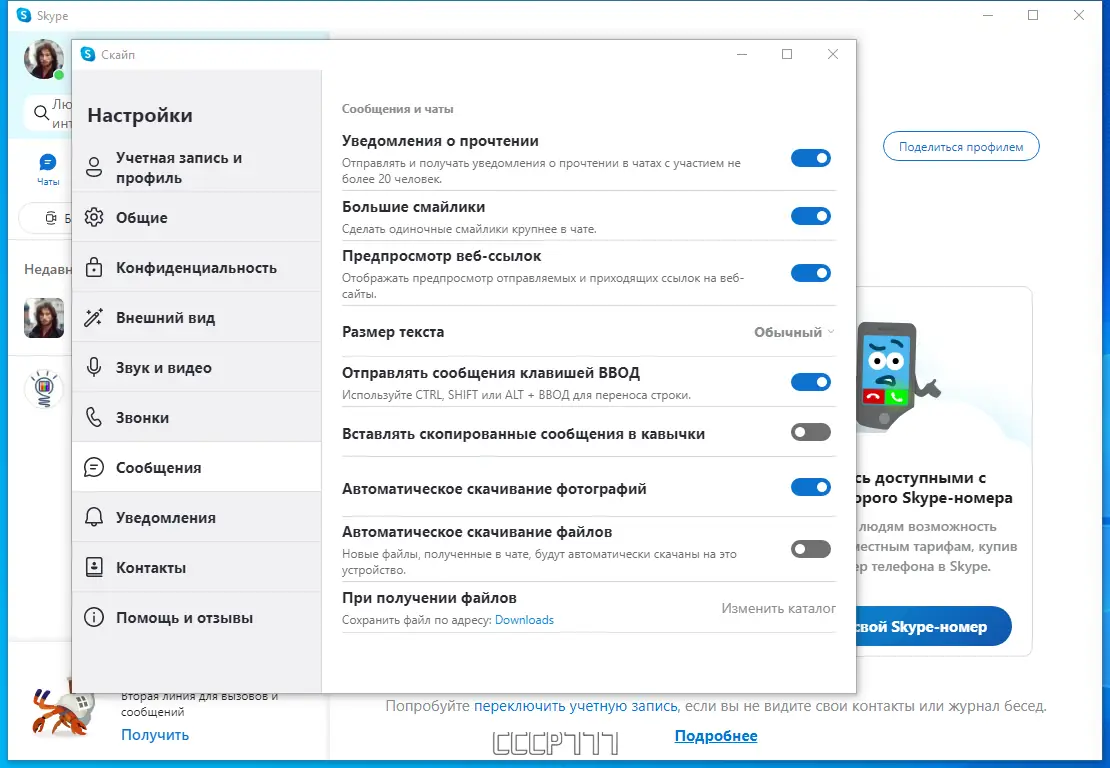 Работа с Skype