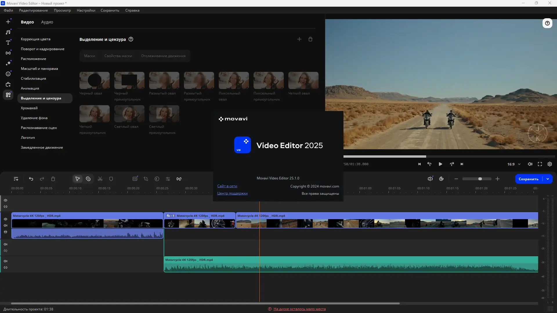 Movavi Video Editor предлагает сбалансированный набор функций при минимальной сложности освоения. Пользователи получают доступ к основным инструментам видеоредактирования без необходимости изучать сложные интерфейсы профессиональных решений. Программа стабильно работает на большинстве конфигураций, поддерживает широкий спектр форматов и предлагает удобные шаблоны экспорта. При этом она остаётся лёгкой и быстрой в установке и запуске. Однако, в базовой версии отсутствуют некоторые продвинутые функции, такие как анимация объектов, которые доступны только в Movavi Видеоредактор Плюс. Также могут возникнуть ложные срабатывания антивирусов при использовании патча в репак-версии.