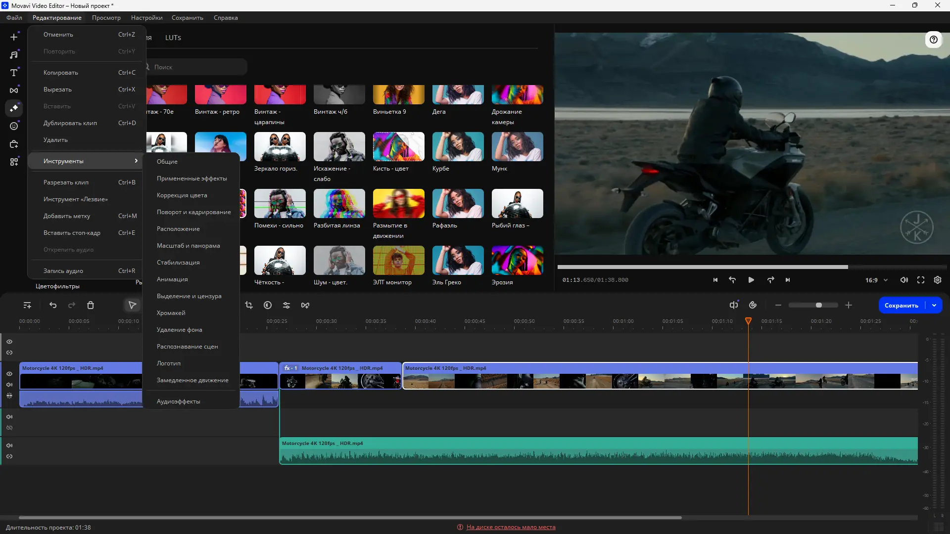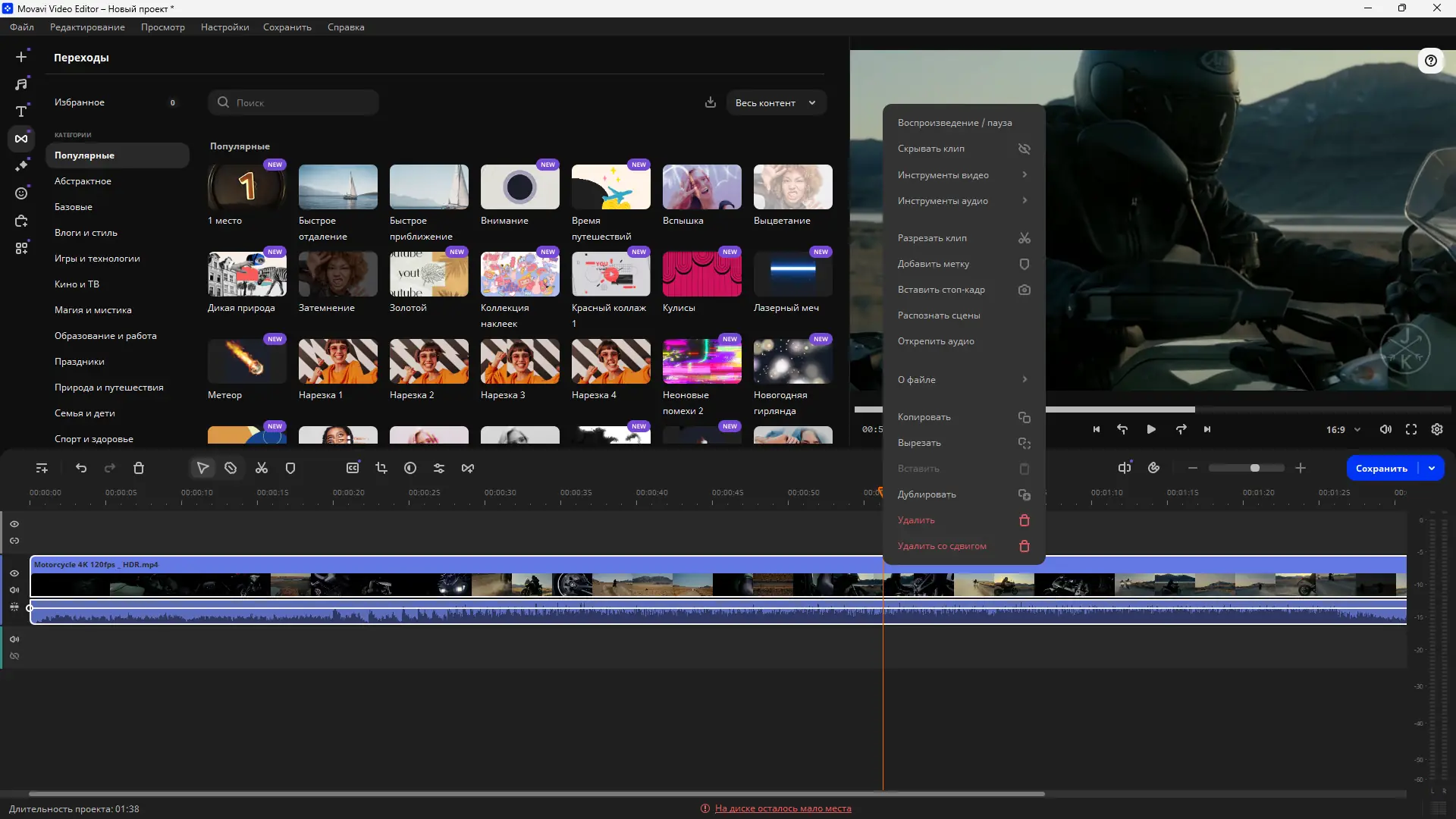 Работа с Movavi Video Editor