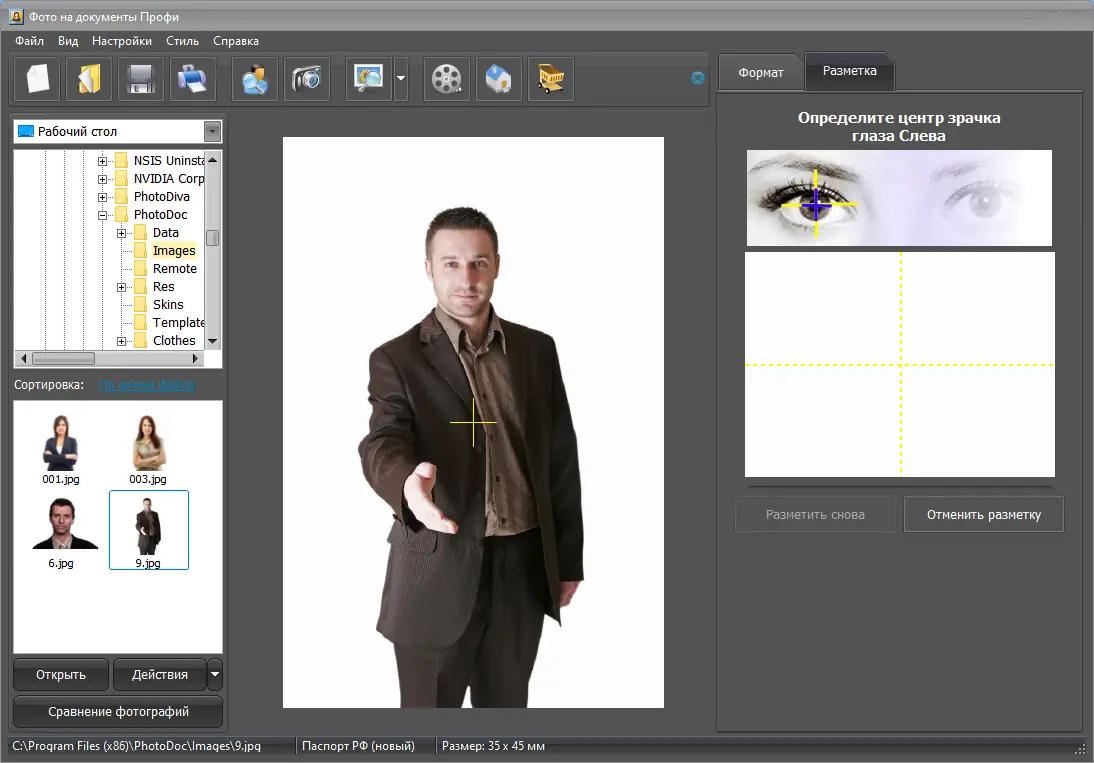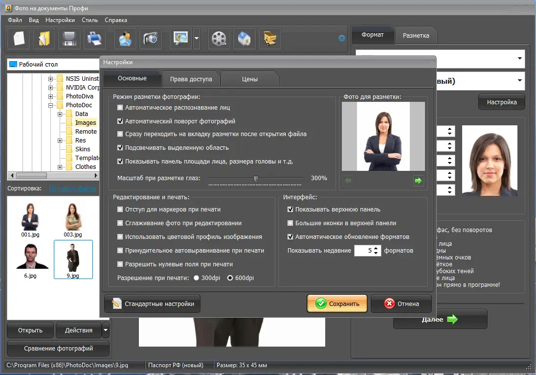 Фото на документы Профи — это удобная программа для быстрой подготовки и печати фотографий, соответствующих требованиям различных документов. Приложение включает готовые шаблоны для паспортов, виз, удостоверений и пропусков, позволяя за несколько минут получить снимки профессионального качества. Интерфейс интуитивно понятен, а функционал охватывает все этапы — от разметки лица до печати.