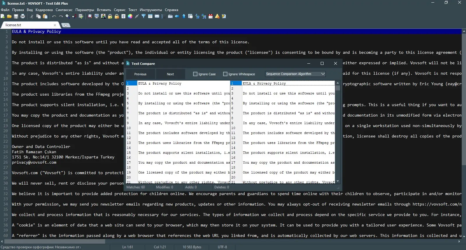 Text Edit Plus предлагает продуманный набор функций, который делает редактирование текста эффективным и удобным даже при работе с большими объёмами данных.