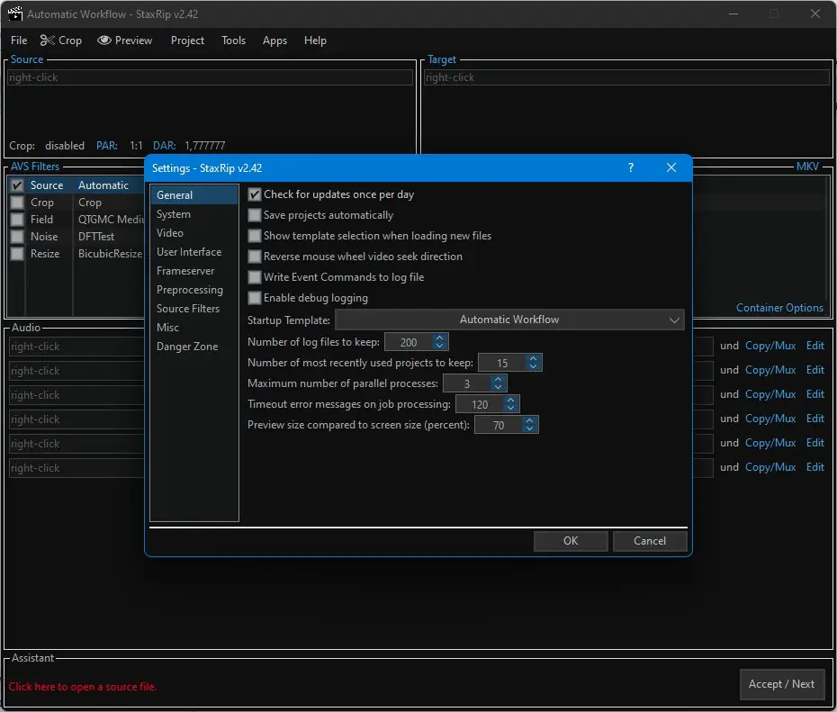 Интерфейс StaxRip интуитивно понятен, несмотря на большое количество доступных опций. Для начала работы достаточно загрузить исходное видео, выбрать нужный выходной формат и кодек, после чего настроить параметры качества, битрейта и обработки аудио. Процесс можно дополнительно кастомизировать с помощью фильтров, обрезки фрагментов, добавления субтитров и выбора режимов кодирования. Подробные как пользоваться инструкции доступны встроенными средствами справки и через систему контекстных подсказок, что упрощает освоение.