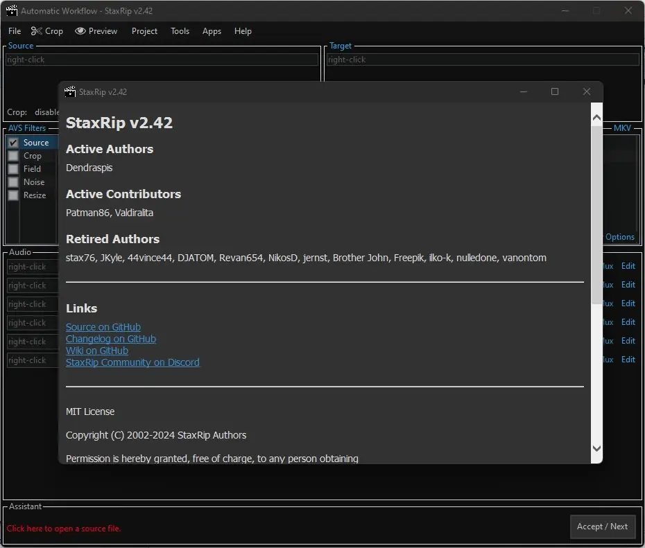 StaxRip — это мощный инструмент для кодирования видео, объединяющий в себе функции риппера, конвертера и редактора, ориентированный на высокое качество обработки медиафайлов. Программа поддерживает широкий спектр форматов, включая Blu-ray, DVD и DVB, и преобразует их в современные кодеки, такие как H.264, H.265, VP9 и другие. Подходит как для новичков, так и для опытных пользователей, желающих получить полный контроль над процессом конвертации.
