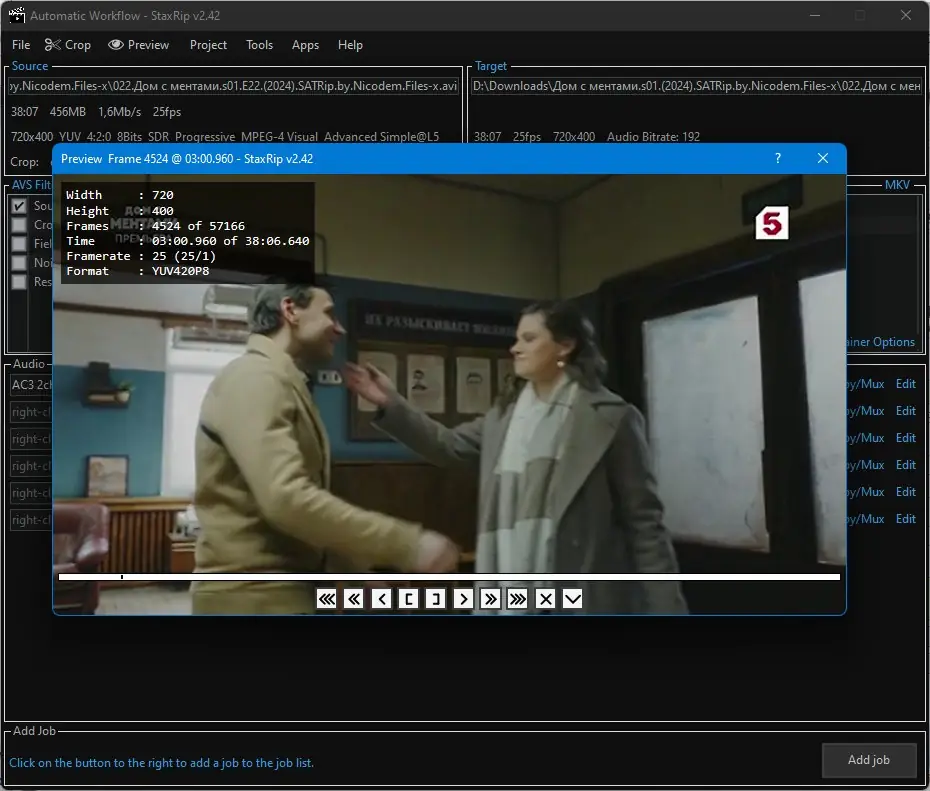 StaxRip представляет собой комплексное решение для перекодирования видео с высокой степенью гибкости и точности. Он использует такие технологии, как AviSynth+ и VapourSynth, обеспечивая стабильную и точную обработку изображения на каждом этапе. Программа поддерживает не только основные форматы, такие как MP4, MKV и AVI, но и позволяет работать с аудиодорожками в форматах AC3, DTS, AAC и WAV, сохраняя качество звука на профессиональном уровне. Благодаря встроенной поддержке аппаратного ускорения от AMD, Intel и NVIDIA, кодирование происходит значительно быстрее без потери детализации.