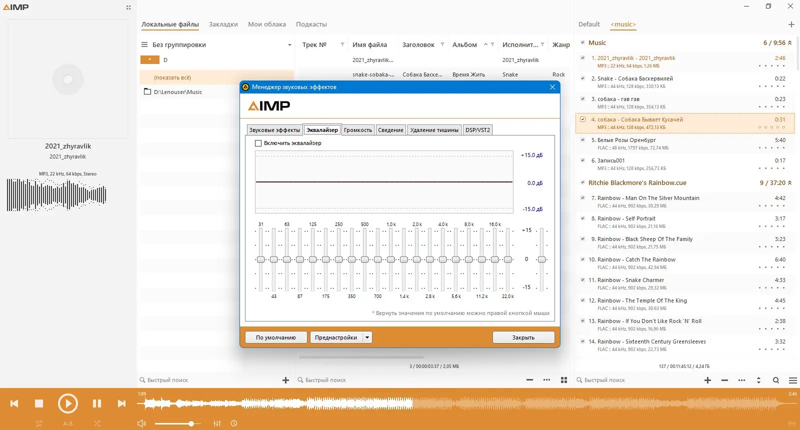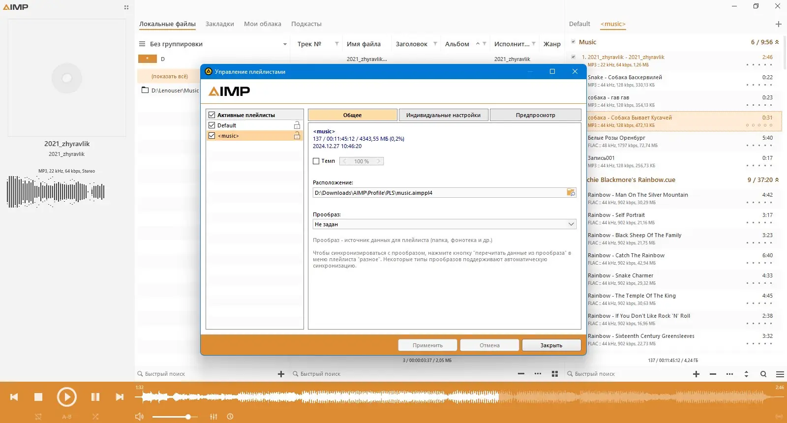 AIMP — это легкий, мощный и полностью бесплатный аудио-плеер, поддерживающий широкий спектр форматов и предлагающий высокое качество воспроизведения. Программа отличается минимальным потреблением ресурсов, продуманным интерфейсом и расширенными настройками для комфортного прослушивания музыки.