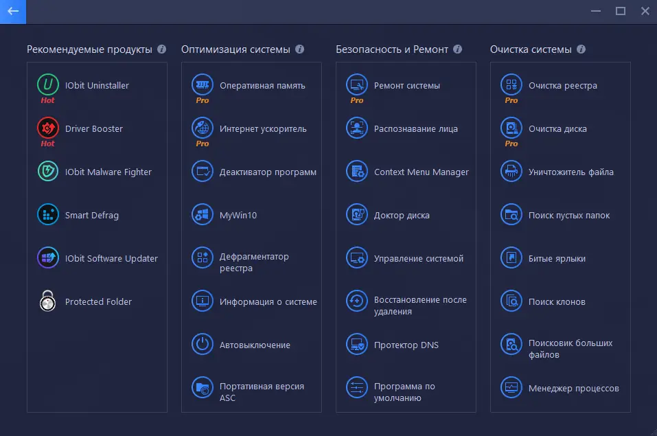 - Наличие расширенного набора инструментов в версии pro для комплексного обслуживания ПК.
