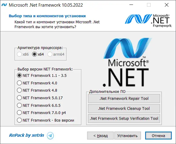 Установка Microsoft .Net Framework возможна через официальные источники или специализированные репаки, включающие несколько версий и дополнительные утилиты. Данный репак поддерживает установку версий 1.1 до 7.0, включая .Net 5, .Net 6 и .Net 7, а также обеспечивает совместимость с различными архитектурами процессоров. Процесс установки можно автоматизировать с помощью ключей командной строки, включая тихий режим и выбор конкретных компонентов.