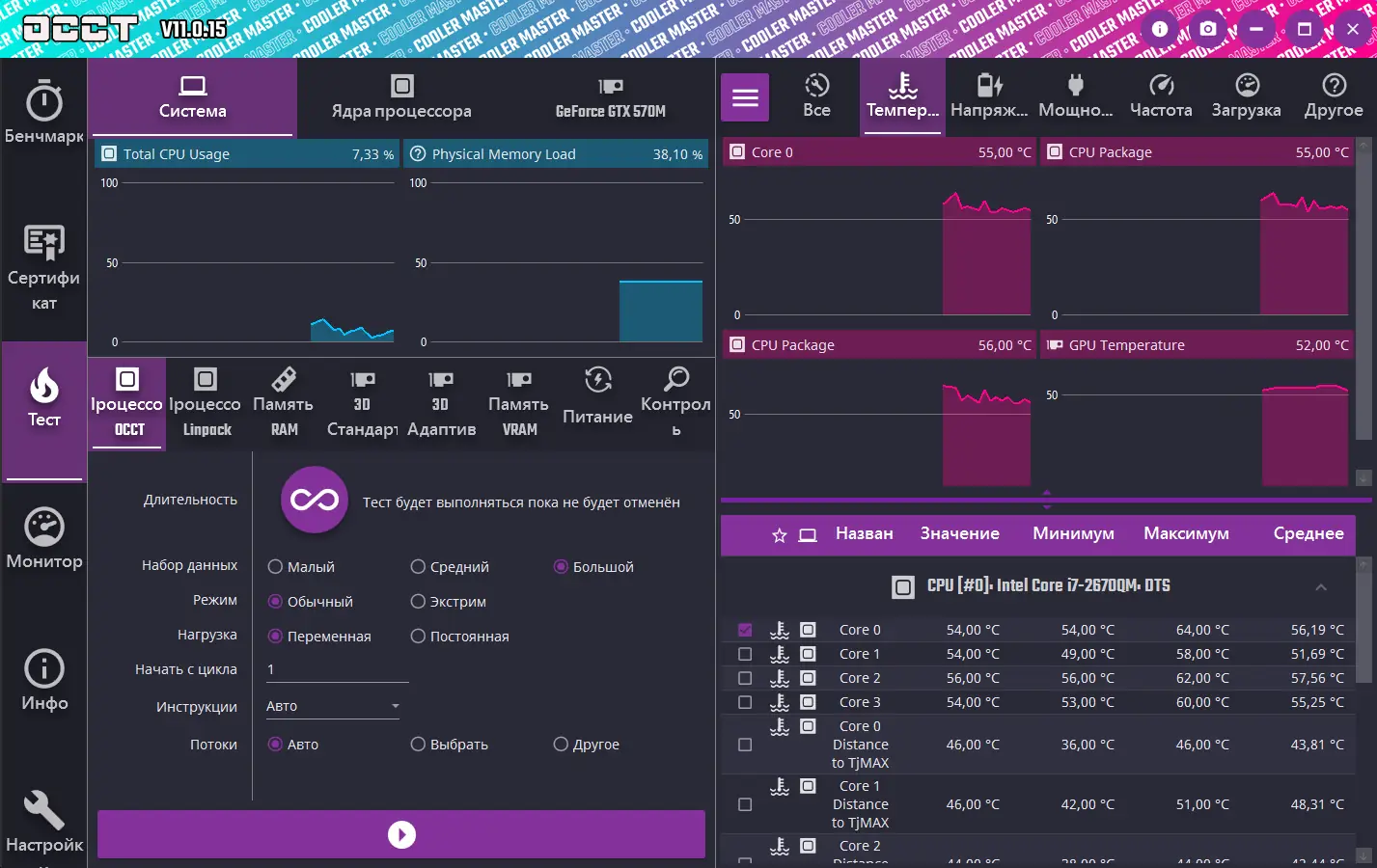 OCCT — это мощная утилита для стресс-тестирования компьютера, позволяющая проверить стабильность работы центрального процессора, оперативной памяти и видеокарты под высокой нагрузкой. Программа отображает результаты в виде наглядных графиков и поддерживает интеграцию с системами мониторинга, что делает её незаменимой при диагностике и разгоне компонентов ПК. Проведение теста помогает выявить перегрев, ошибки и нестабильность системы.
