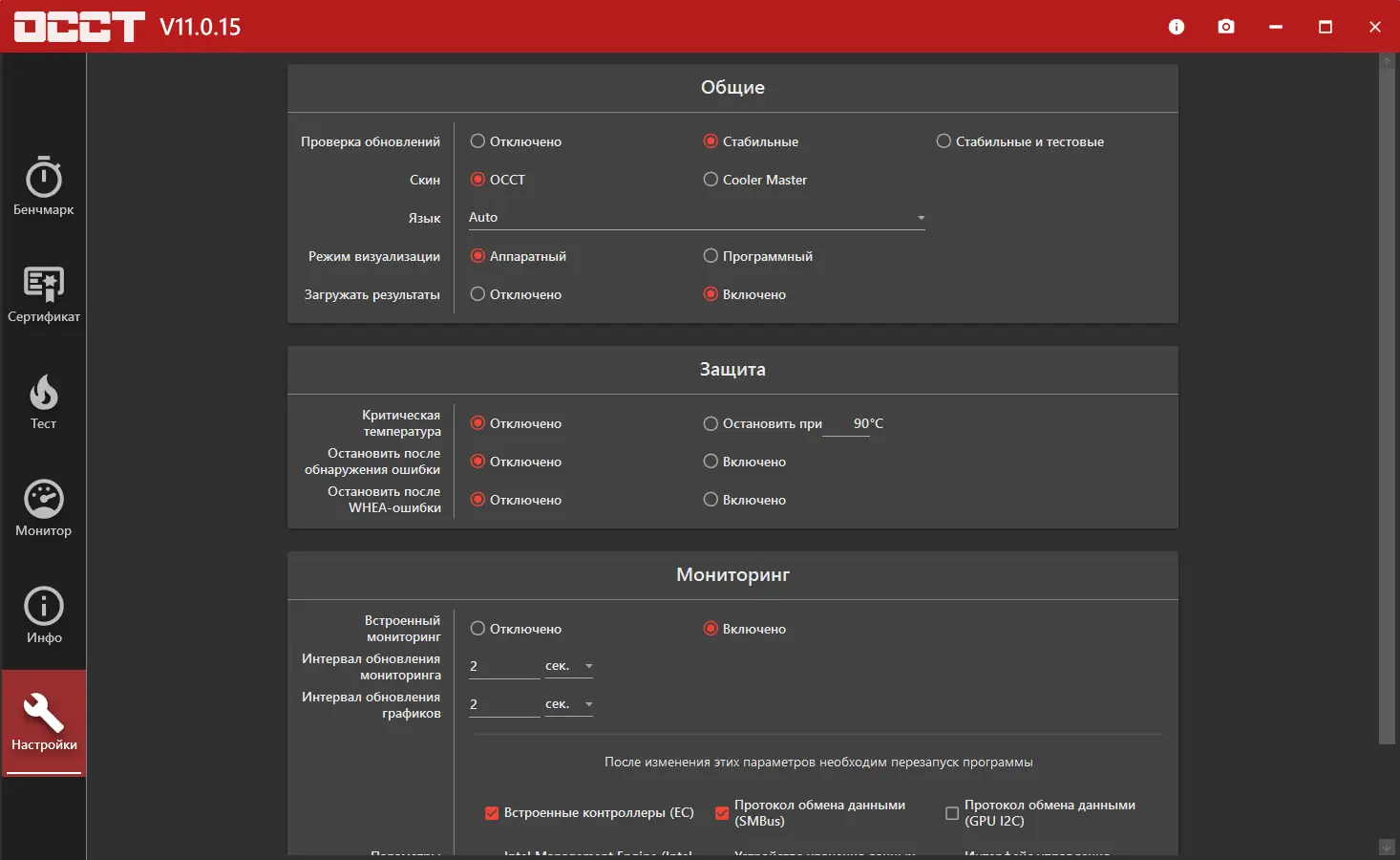 - Поддержка стресс-тестов CPU, RAM и GPU