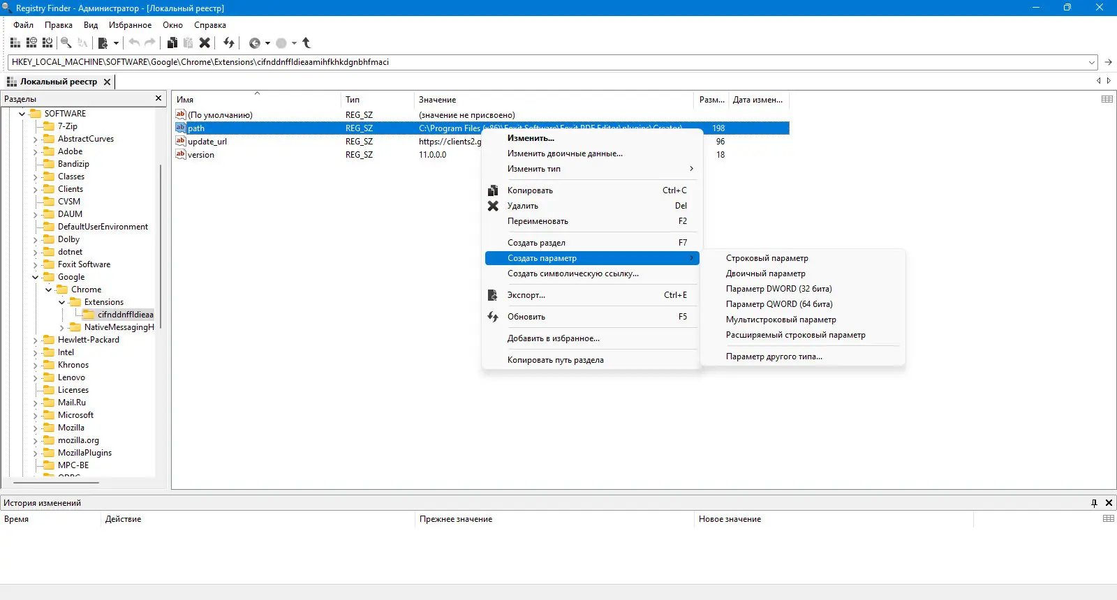 - Интеграция с контекстным меню проводника и ассоциация с файлами .reg.