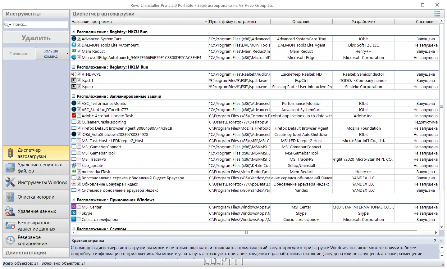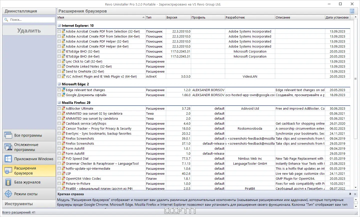 - Эффективное сканирование и удаление следов программ после деинсталляции