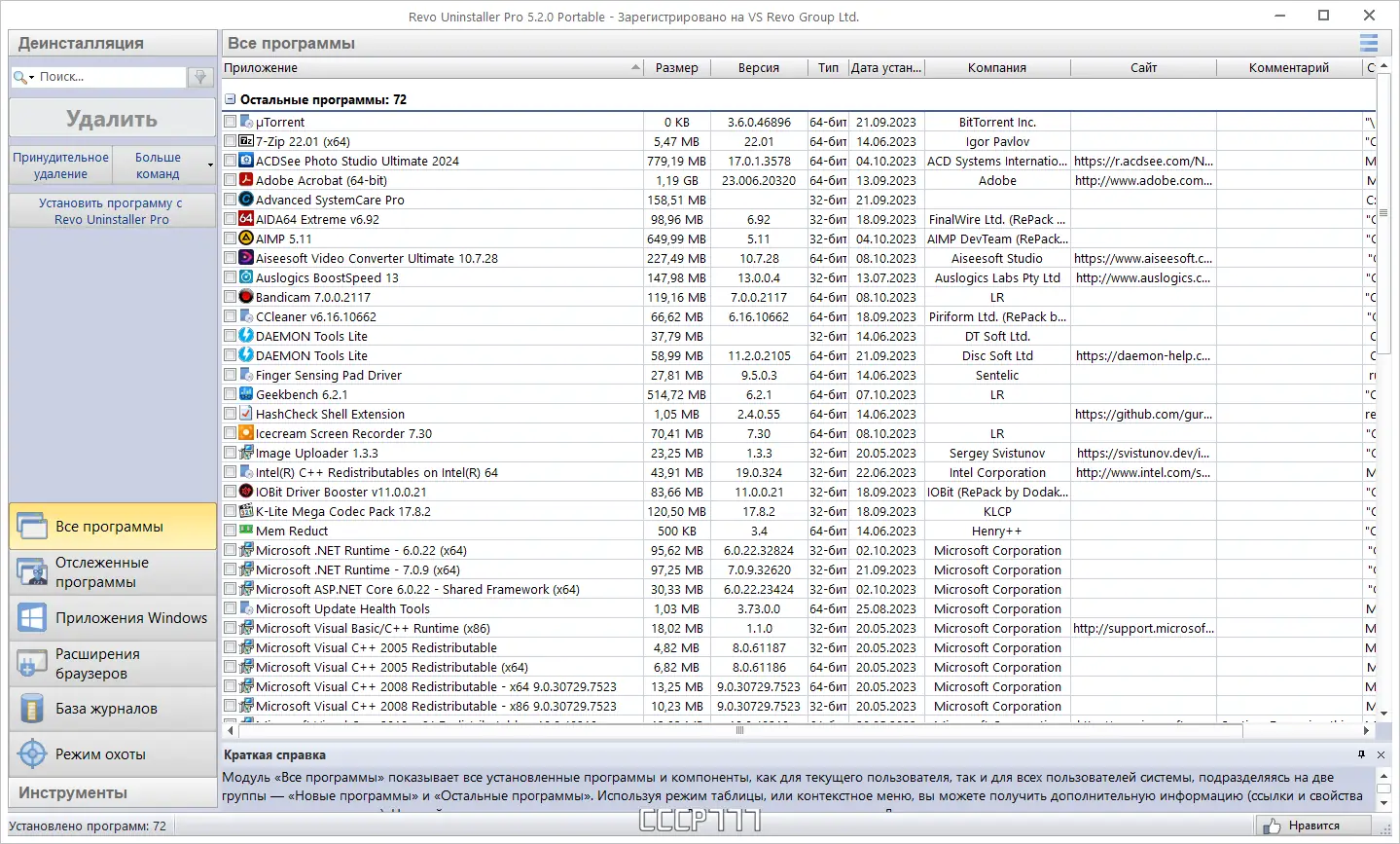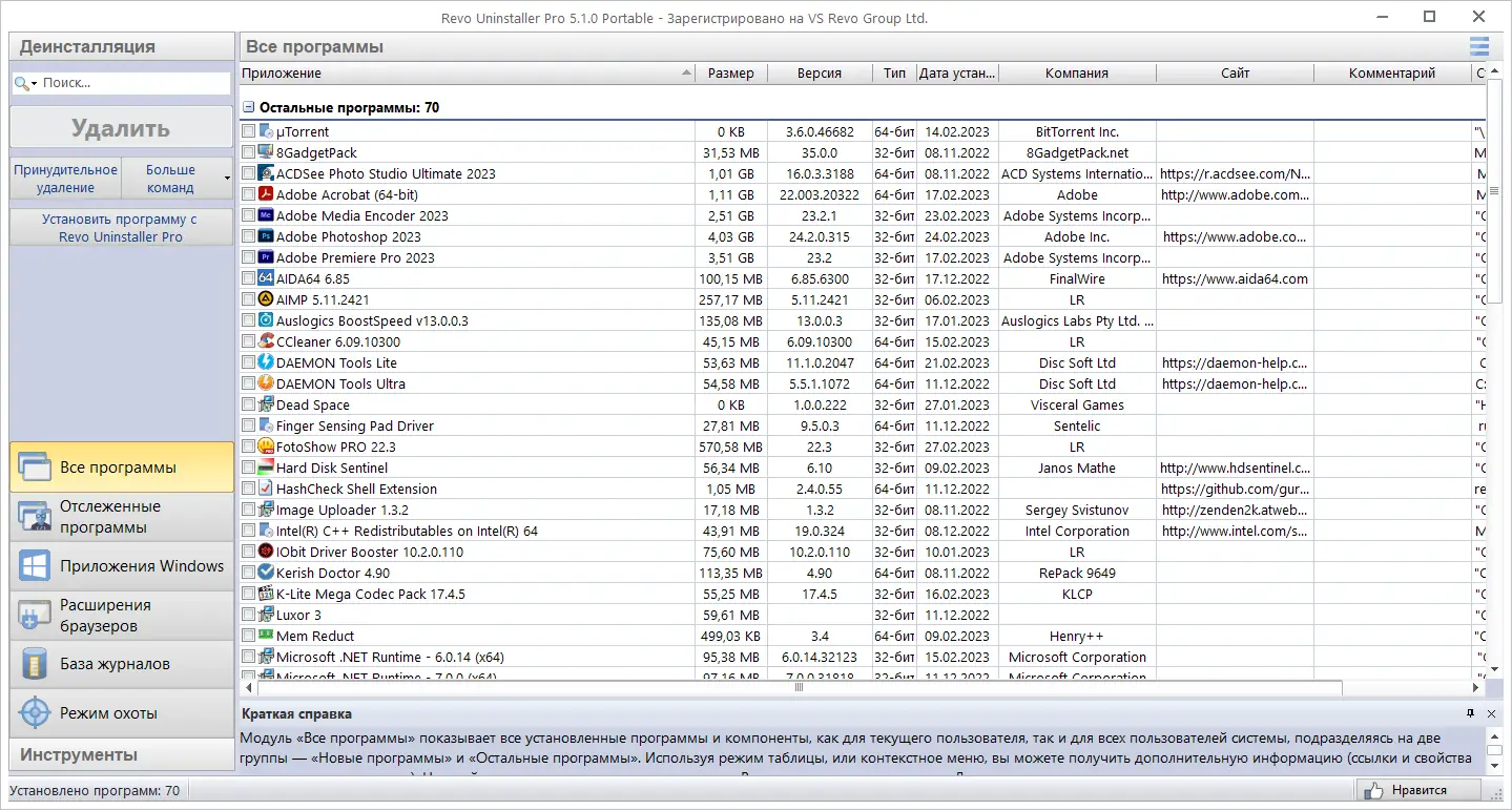 Revo Uninstaller сочетает простоту интерфейса с высокой эффективностью при удалении программ и очистке системы.