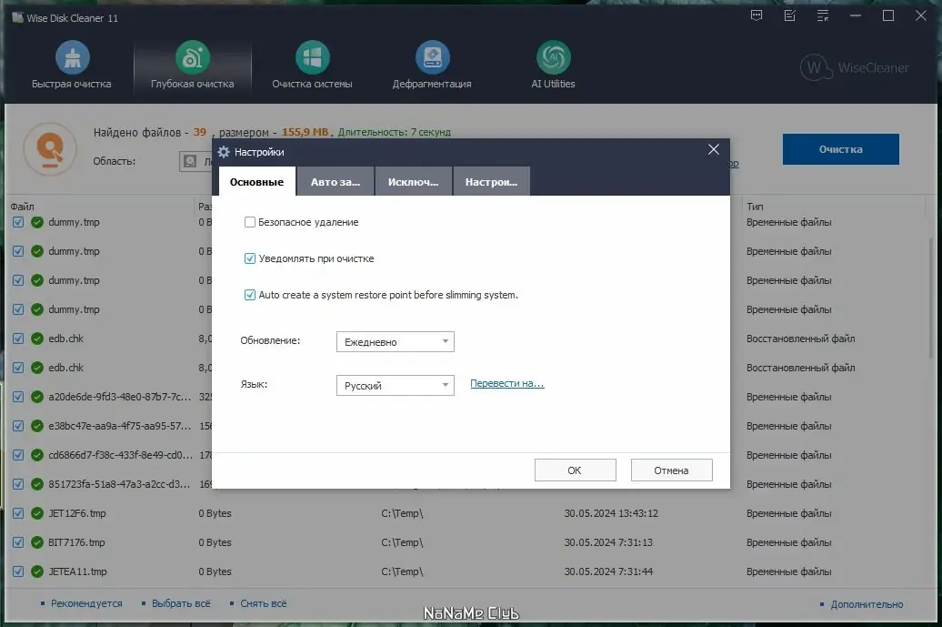 - Поддержка более чем 50 форматов мусорных файлов с возможностью добавления пользовательских типов.