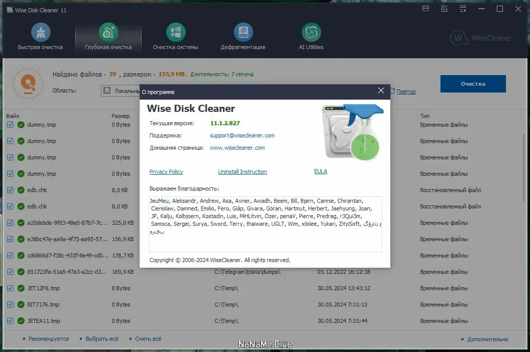 Wise Disk Cleaner — это легковесная утилита для очистки дисков от временных, кэшированных и ненужных файлов, способная повысить производительность системы за счёт освобождения дискового пространства. Программа поддерживает широкий спектр типов мусорных данных и позволяет тщательно контролировать процесс удаления.