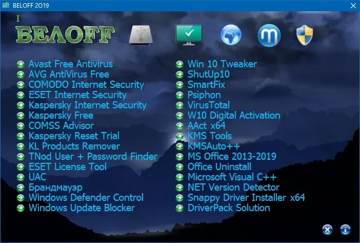 BELOFF — универсальный сборник лучших программ Рунета с автоматической установкой на Windows. Включает офисные, мультимедийные, системные и портативные приложения, драйверы, архиваторы, утилиты для обслуживания ПК и восстановления данных. Поддерживает мультизагрузку, установку через WPI и работу с USB-накопителей. Идеальное решение для настройки компьютера «под ключ».