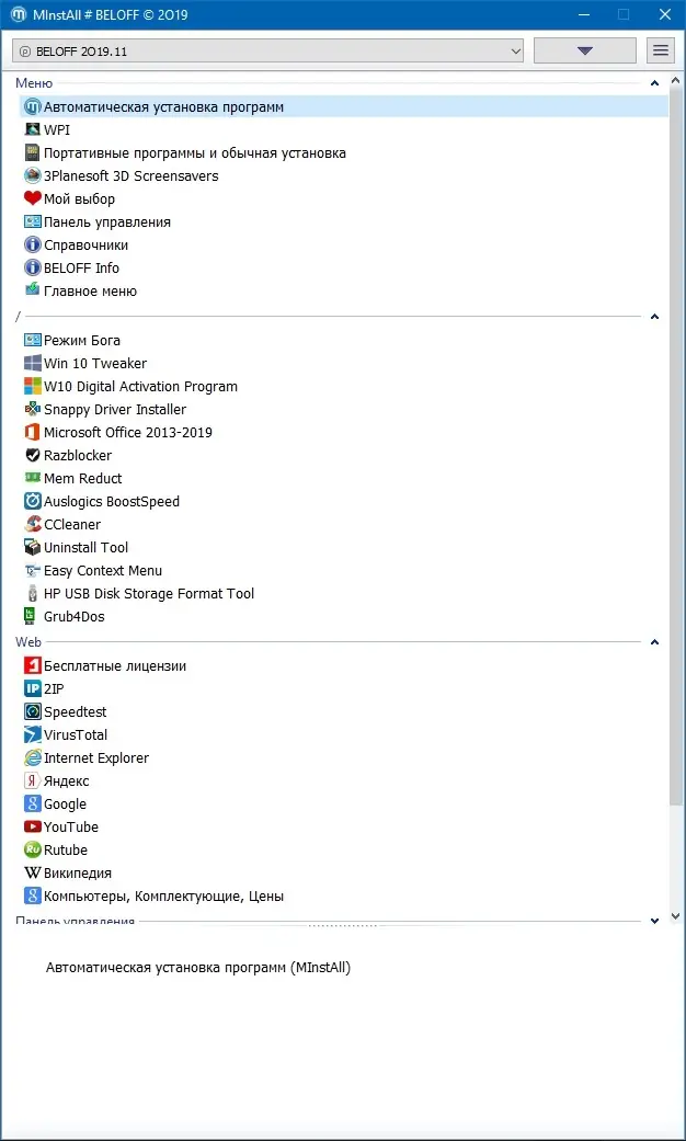 BELOFF — это всеобъемлющий сборник программного обеспечения, собранный и структурированный для удобной установки на компьютеры под управлением Windows. Проект ориентирован на пользователей, которые ценят время и эффективность, позволяя быстро развернуть полноценную рабочую среду без поиска и ручной установки каждого приложения. Сборка включает как лицензионные аналоги, так и бесплатные утилиты, распределённые по категориям: офис, графика, мультимедиа, безопасность, обслуживание системы и многое другое. Особое внимание уделено совместимости с разными версиями Windows — от XP до 11.