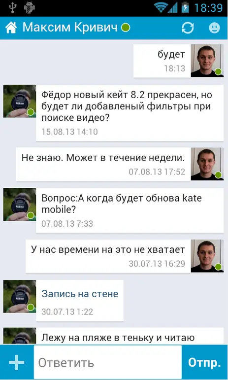 Работа с Kate Mobile