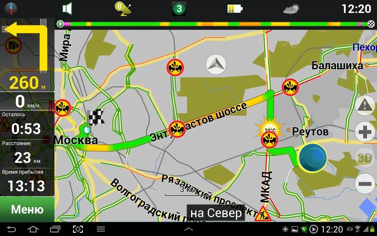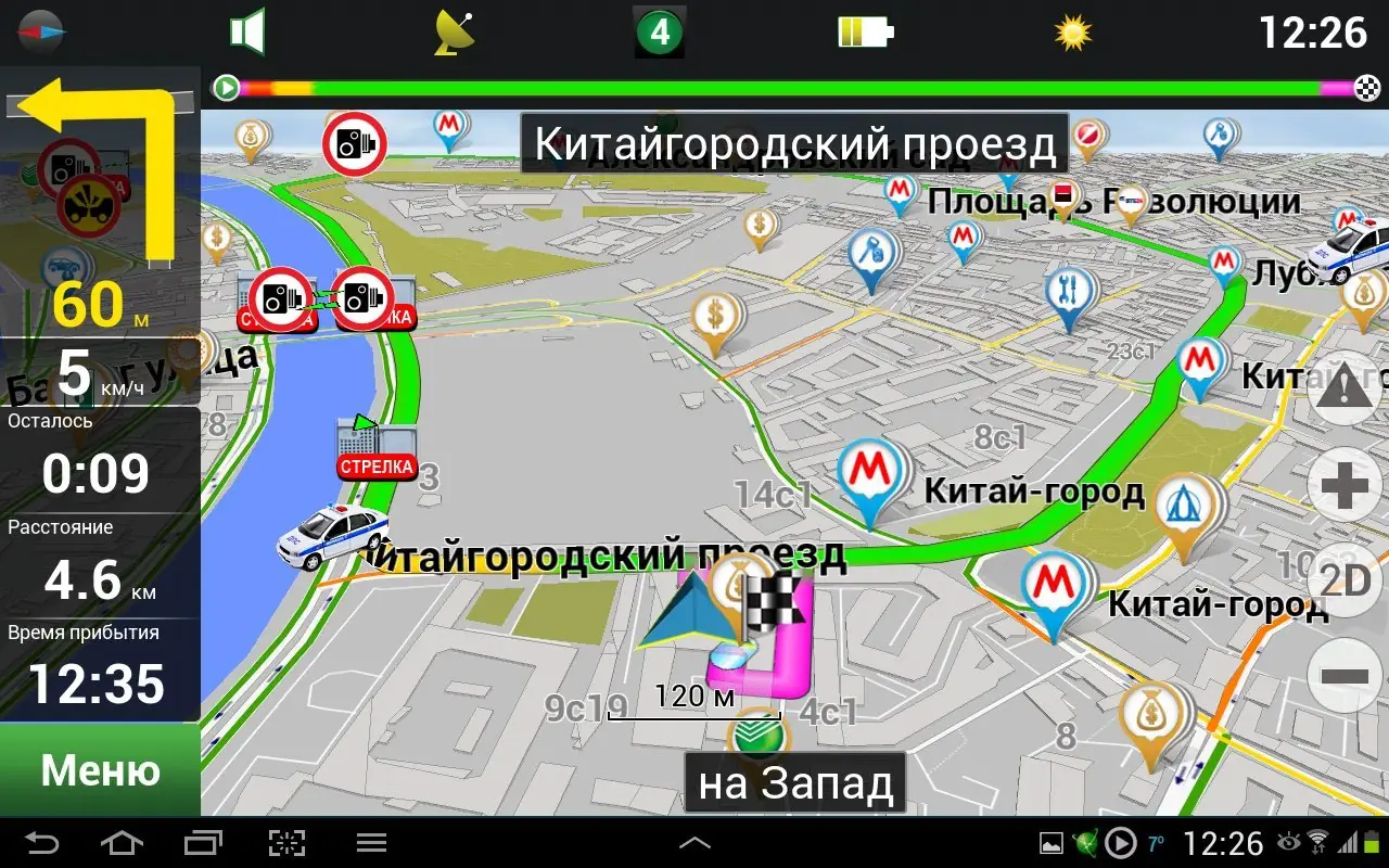 - Автоматическое проложение маршрута с учётом текущей дорожной обстановки, включая пробки и ограничения скорости.