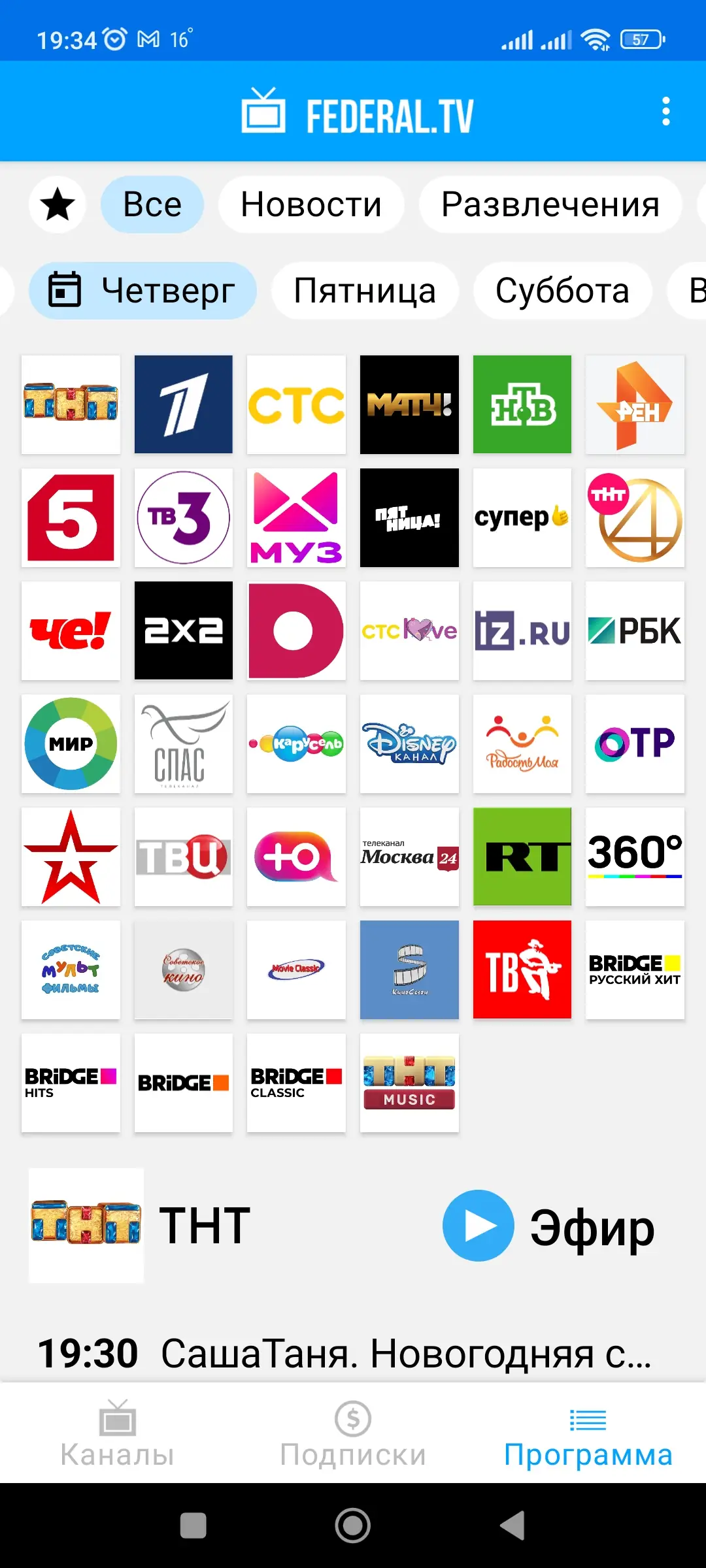 - Телепрограмма на неделю с возможностью просмотра расписания передач