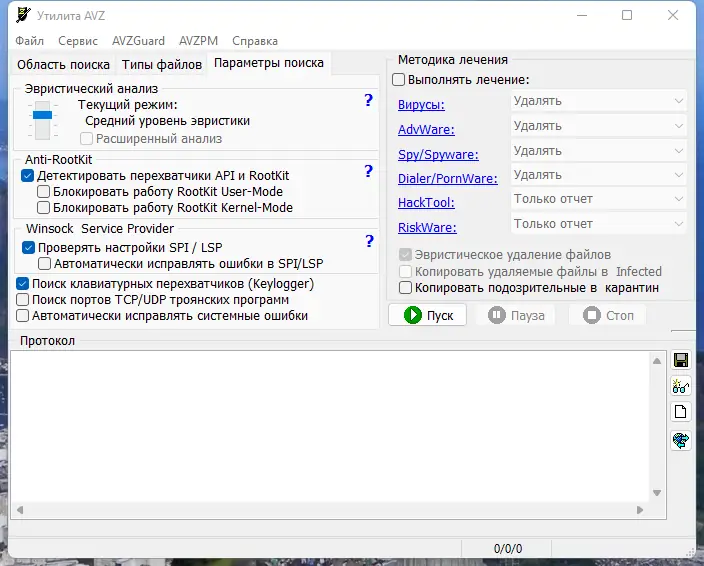 AVZ сочетает в себе функции антивируса, антируткита и системного анализатора, обеспечивая комплексный подход к очистке заражённых компьютеров.