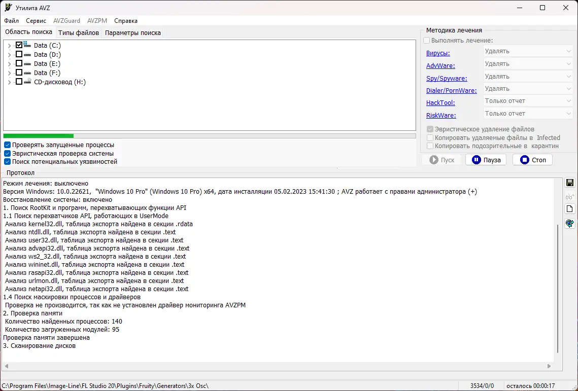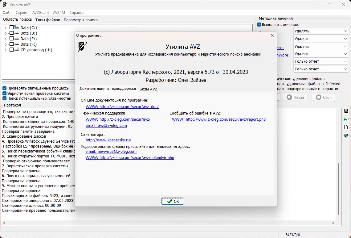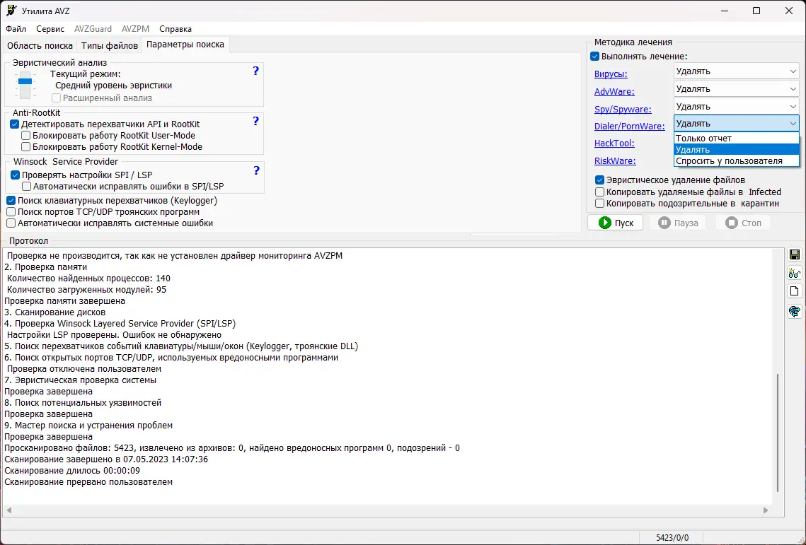 Работа с Антивирусная утилита AVZ