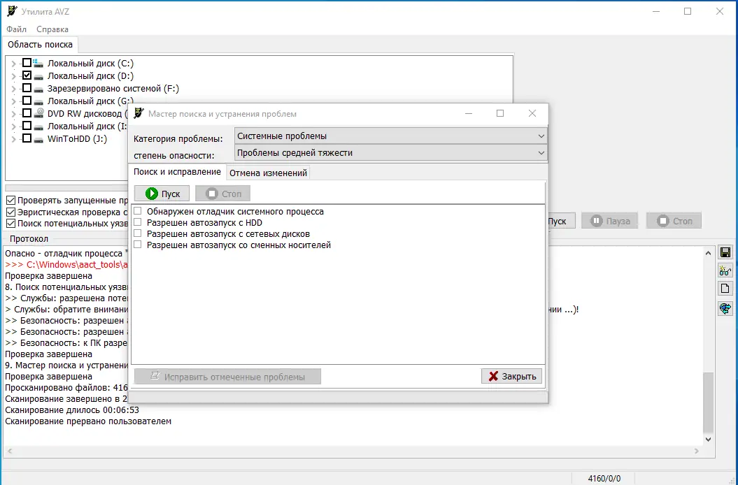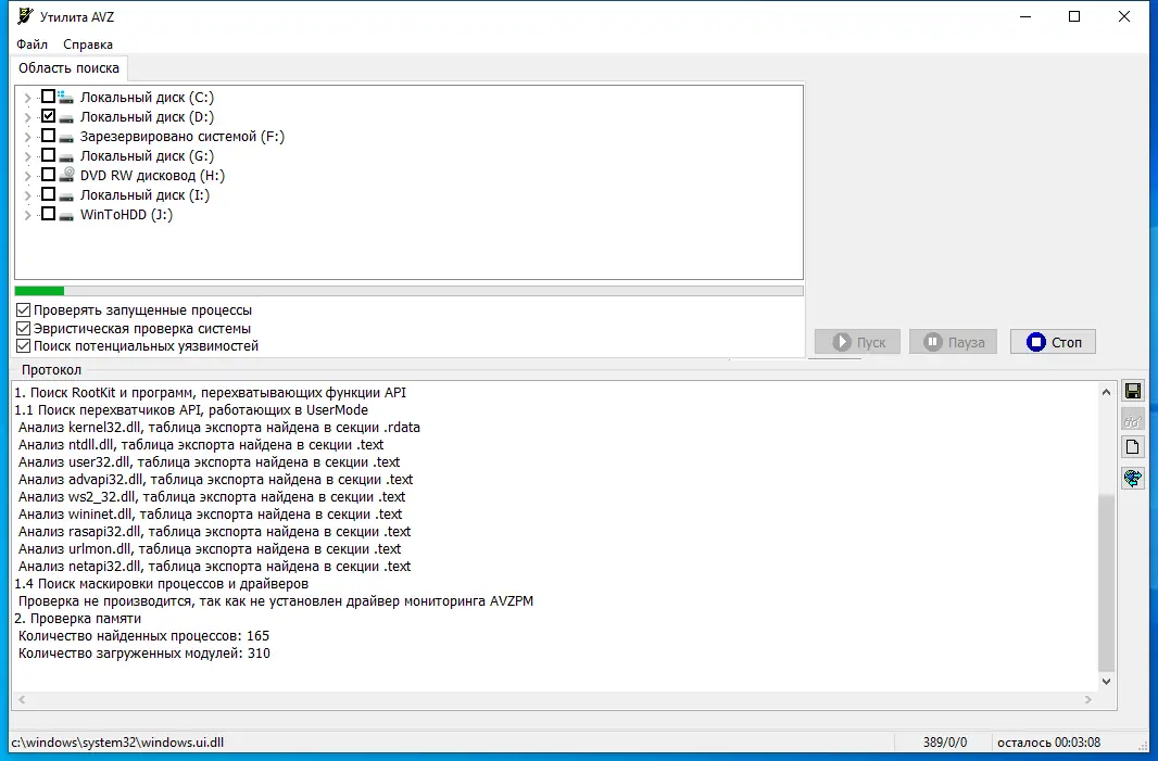 - Система эвристического поиска выявляет вредоносные модули по косвенным признакам — через анализ изменений в реестре, автозагрузке и структуре файловой системы.