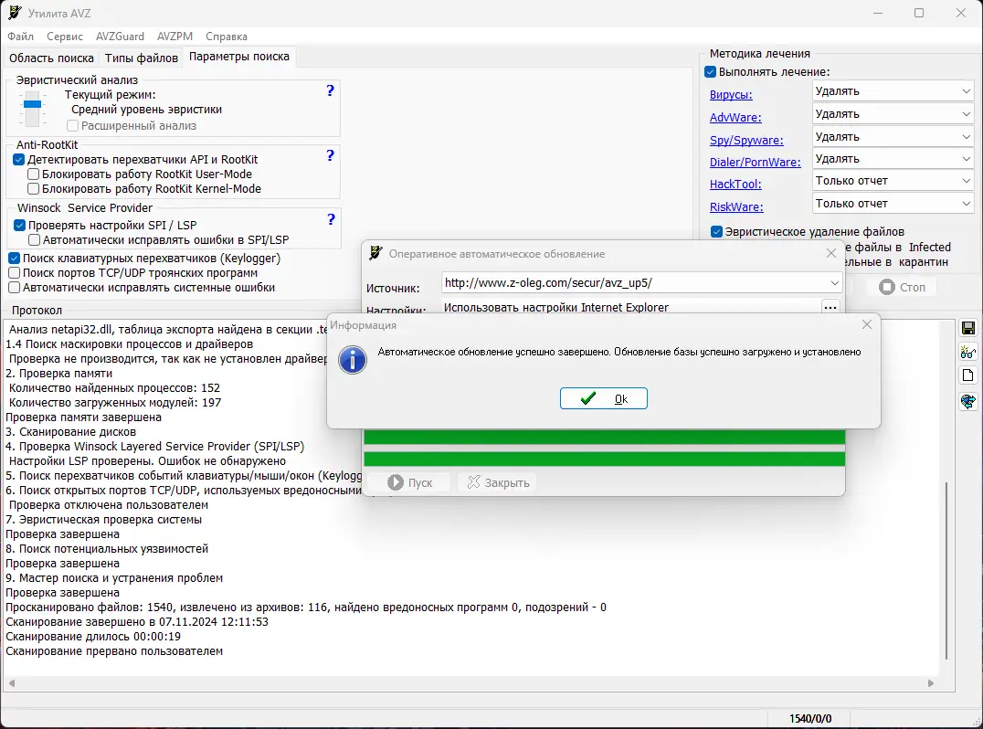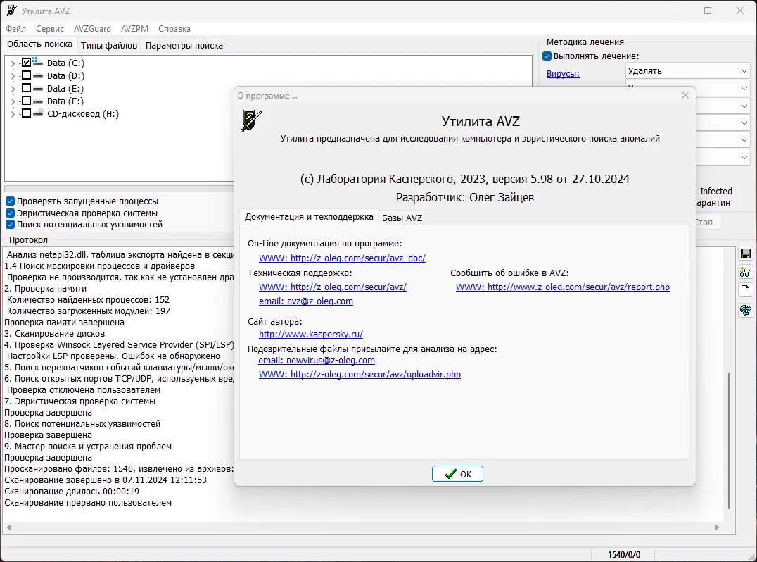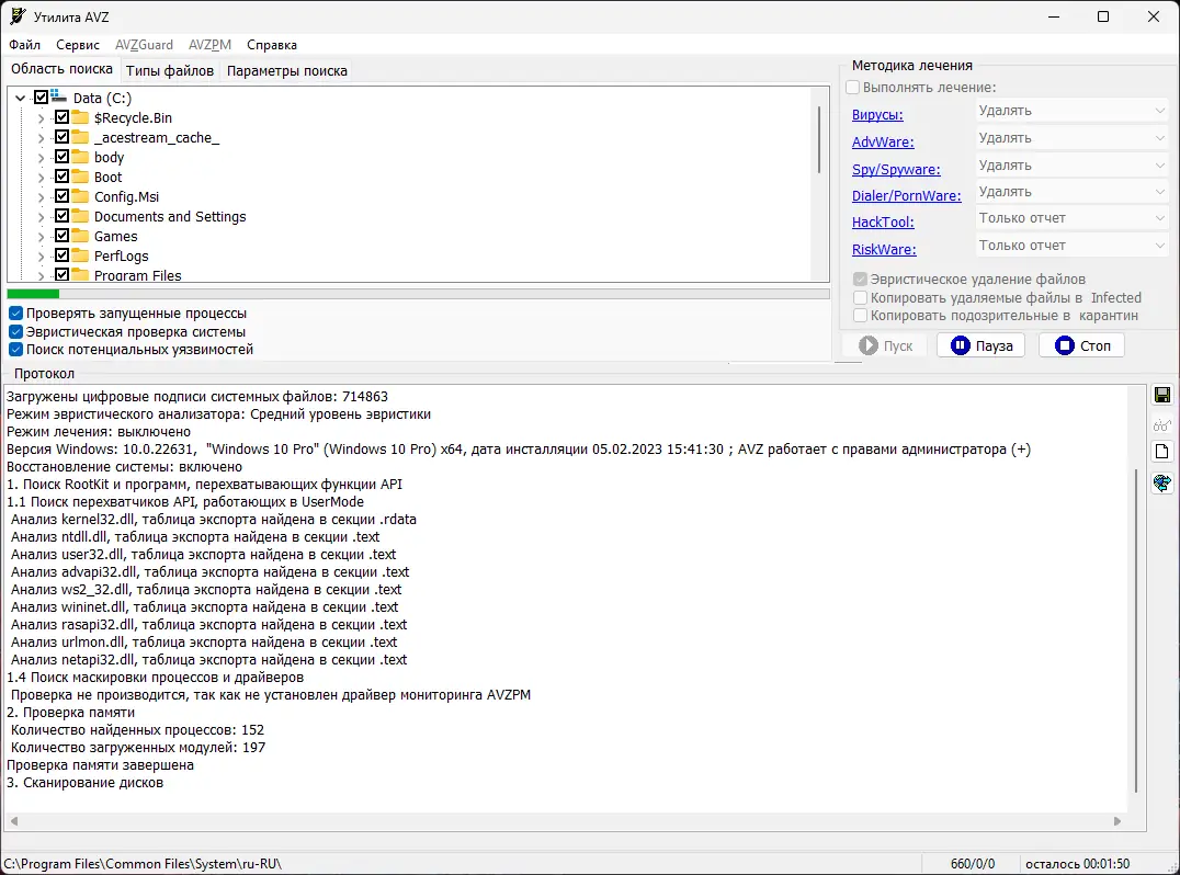 AVZ сочетает в себе скорость, глубину анализа и высокую степень детектирования сложных угроз без необходимости постоянного подключения к интернету.