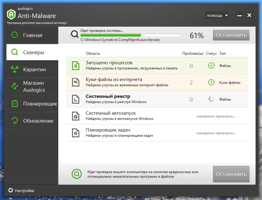 Как пользоваться Auslogics Anti-Malware