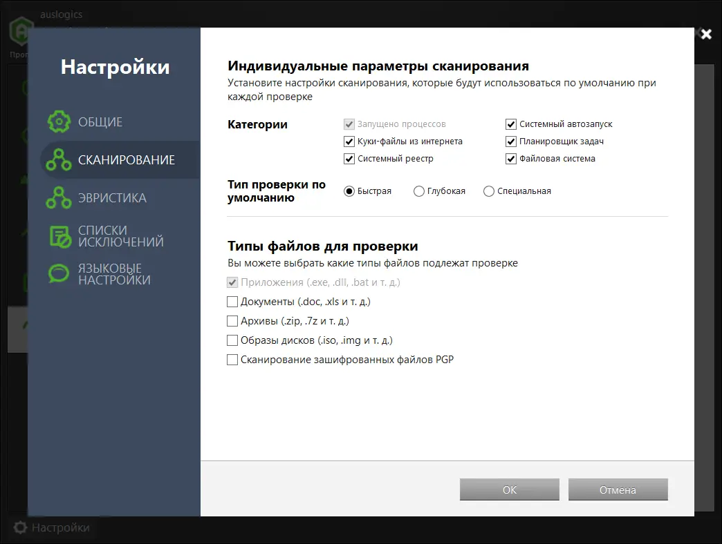 - Поддерживает три режима сканирования: быстрое, глубокое и настраиваемое
