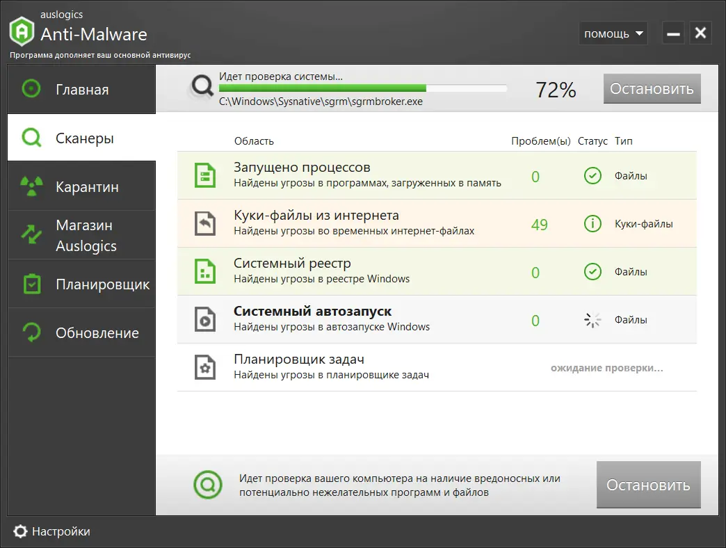 Auslogics Anti-Malware разработана для пользователей, которые хотят усилить защиту своей системы без замены основного антивирусного решения. Утилита специализируется на поиске потенциально нежелательных программ, троянов, шпионского ПО и других угроз, которые могут оставаться незамеченными стандартными средствами. Её работа направлена на анализ системной памяти, реестра, файлов автозапуска и браузерных расширений, где чаще всего скрываются вредоносные компоненты.