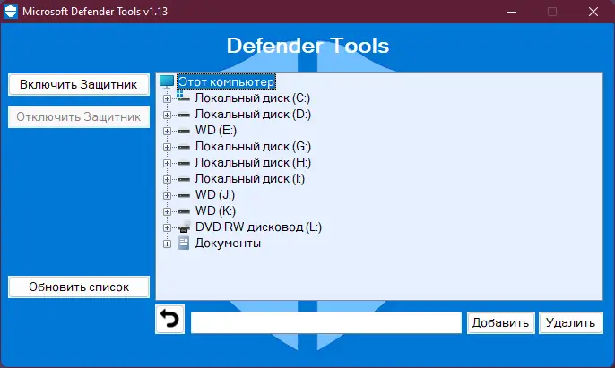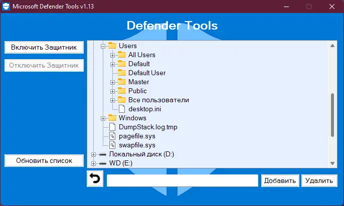 Defender Tools — это компактная утилита, позволяющая быстро отключить защитник Windows или настроить исключения для файлов и папок. Программа не требует установки и поддерживает работу с накопителей, включая флешки.