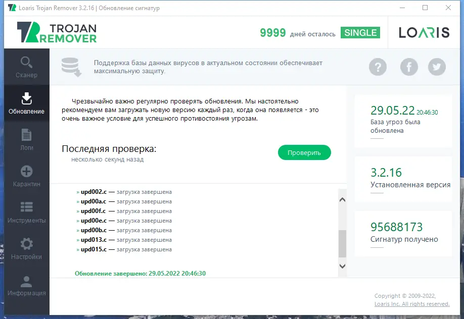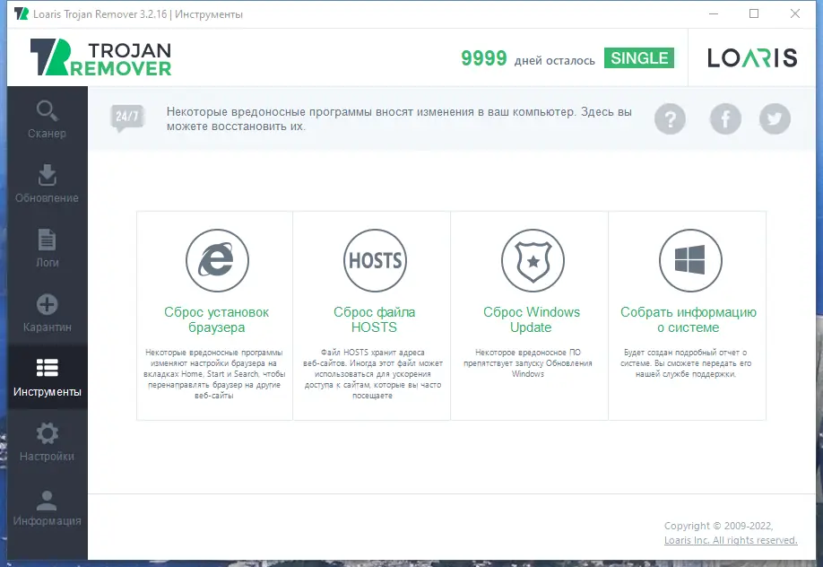 Loaris Trojan Remover — это инструмент, разработанный для борьбы с устойчивыми формами вредоносного ПО, которые часто остаются незамеченными или не до конца удаляются стандартными антивирусами. Утилита эффективно справляется с такими угрозами, как трояны, шпионские программы, рекламное ПО и черви, которые могут скрываться в системных разделах и изменять важные параметры системы. Программа позволяет проводить как быстрое сканирование критически важных областей, так и полное обследование всех дисков и папок. Она не предназначена для постоянной защиты в реальном времени, но отлично подходит для точечного реагирования на уже выявленные инфекции. Работа сопровождается подробным логированием, что позволяет отслеживать все обнаруженные и удалённые объекты.