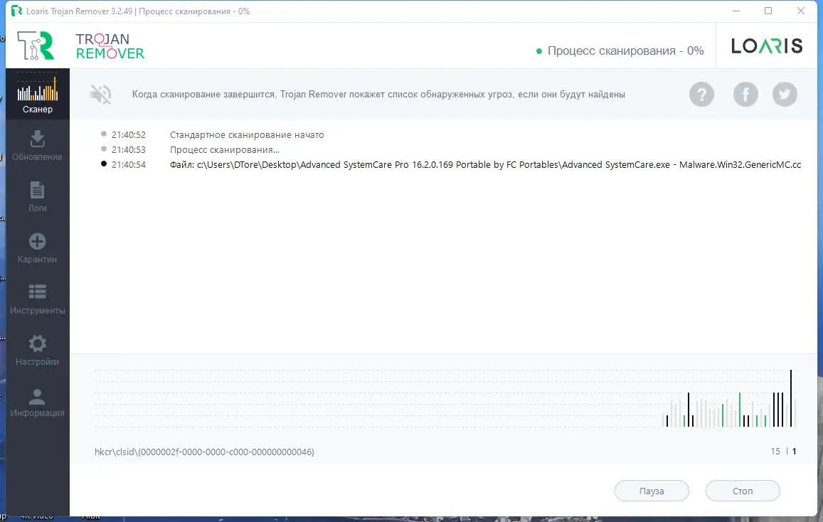 Loaris Trojan Remover разработан как дополнительное средство защиты, способное локализовать и устранить сложные вредоносные компоненты, остающиеся после работы основного антивируса. Утилита поддерживает два режима сканирования: быструю проверку наиболее уязвимых системных областей и полное сканирование всего дискового пространства. Это позволяет гибко подходить к диагностике заражённых компьютеров в зависимости от степени угрозы. Программа также отслеживает изменения, внесённые вредоносными программами, и возвращает систему в исходное состояние.