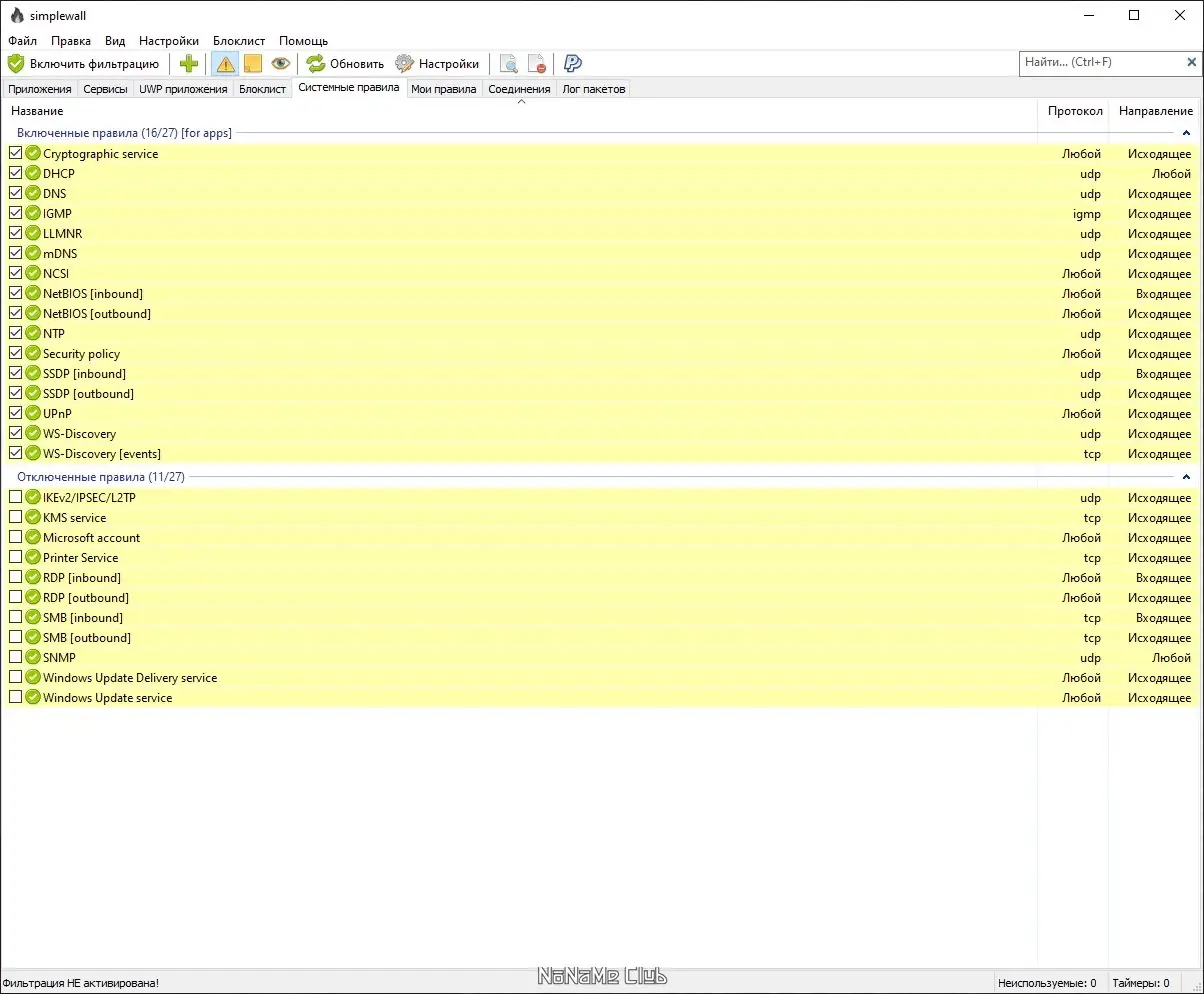Это компактный брандмауэр, разработанный для эффективного контроля сетевых подключений в системе. В отличие от многих аналогов, он не перегружен функциями, но при этом предоставляет всё необходимое для настройки фильтрации трафика. Работа осуществляется через WFP — технологию Microsoft, которая обеспечивает глубокую интеграцию с операционной системой.