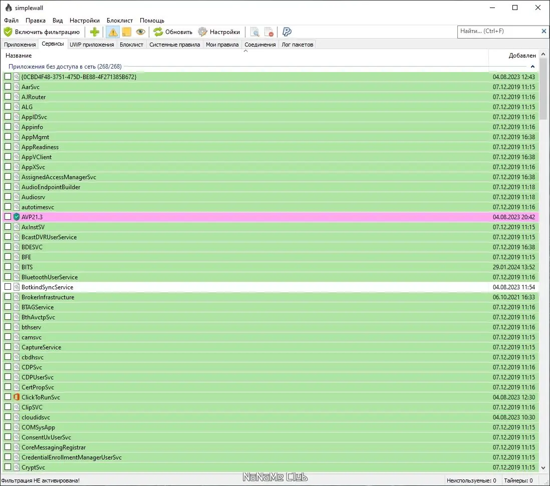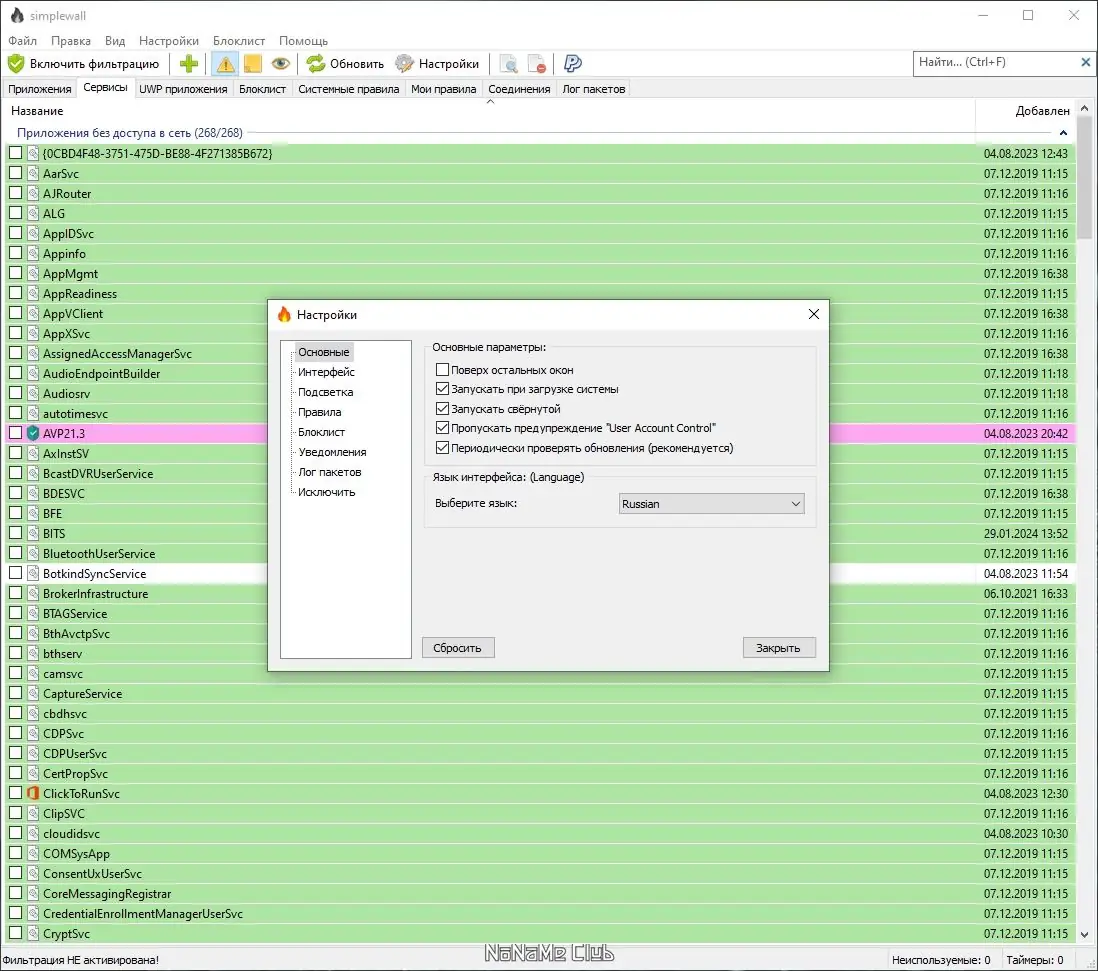 Работа с simplewall