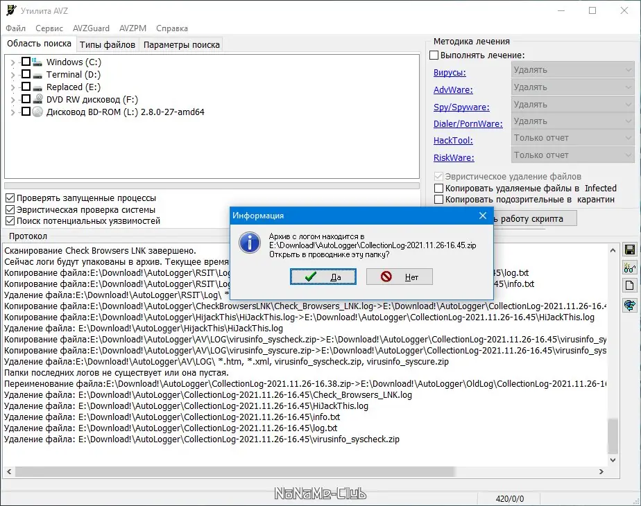 После запуска утилиты на экране появляется информационное окно, уведомляющее пользователя о начале процесса. При подтверждении действия программа распаковывается в необходимые директории и запускает AVZ с основным скриптом GeneralScript.txt. Далее происходит комплексная диагностика: проверяются настройки браузера по умолчанию, запускаются Internet Explorer и основной браузер, анализируются системные процессы и службы. Если требуется перезагрузка, пользователь получает запрос, но может отложить её на более удобное время. После перезагрузки продолжается выполнение скрипта, включая сбор данных через RSIT и Check Browsers’ LNK. Завершающим этапом становится архивация всех логов с помощью 7za.exe и завершение работы. Поддержка ключей командной строки позволяет настраивать поведение утилиты в зависимости от задач, что особенно полезно при массовом использовании или интеграции в диагностические комплексы. В процессе работы AutoLogger может попытаться снять блокировку реестра, если обнаружит соответствующие признаки вредоносной активности.