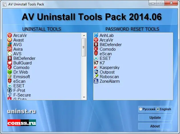 - Включает официальные инструменты удаления от разработчиков антивирусов