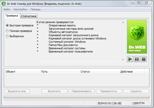 Запуск Dr.Web осуществляется напрямую с носителя без необходимости установки. После старта открывается интерфейс сканера, где доступны опции выбора объектов проверки — от отдельных файлов до всего диска. Для обновления антивирусных баз используется встроенная утилита Updatеr, которая загружает только изменённые компоненты, минимизируя объём передаваемых данных. Рекомендуется перед началом работы убедиться, что антивирусные базы актуальны, особенно если программа используется на заражённых системах.