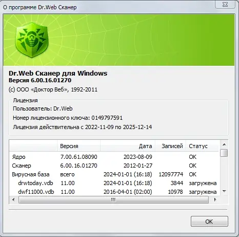 Программа доступна для загрузки в портативном формате, совместимом с современными версиями Windows. Версия сканера — 6.00.16.01270, ядро — 7.00.59.12300, базы обновлены на 01.01.2024, лицензия действует до декабря 2025 года. В комплекте присутствует подробная инструкция с ответами на типичные вопросы, включая методы обхода блокировок и замены лицензионных ключей. Для корректной работы рекомендуется копировать папку программы после загрузки, если планируется раздача в торрент-сетях.