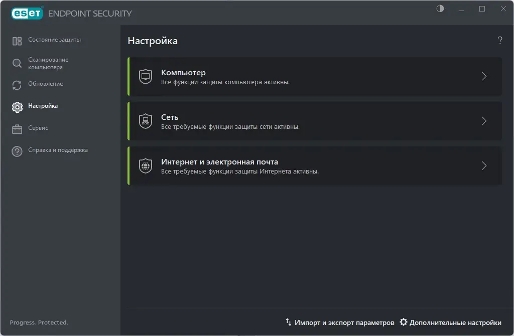 ESET Endpoint Antivirus разработан для обеспечения надежной защиты рабочих станций в корпоративной среде. Программное обеспечение сочетает в себе передовые технологии обнаружения угроз, включая эвристический анализ, машинное обучение и облачную репутацию файлов. Это позволяет выявлять и блокировать как известные, так и ранее неизвестные вредоносные программы без необходимости полной загрузки сигнатур. Архитектура решения оптимизирована для работы в крупных организациях, где важны стабильность, централизованное управление и экономия сетевых ресурсов. Антивирус эффективно взаимодействует с другими компонентами безопасности, такими как брандмауэр, HIPS и средства контроля доступа.