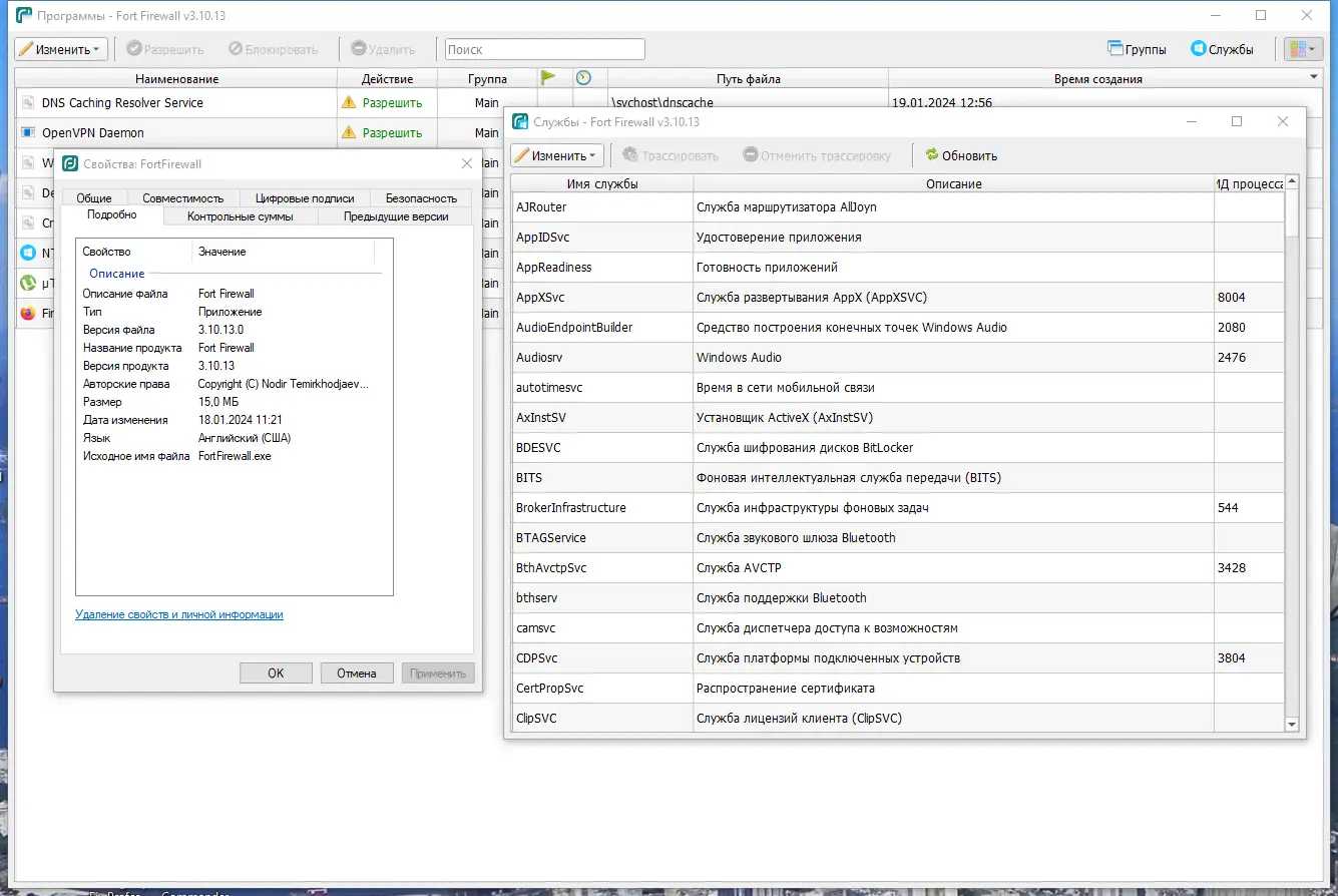 Работа с Fort Firewall