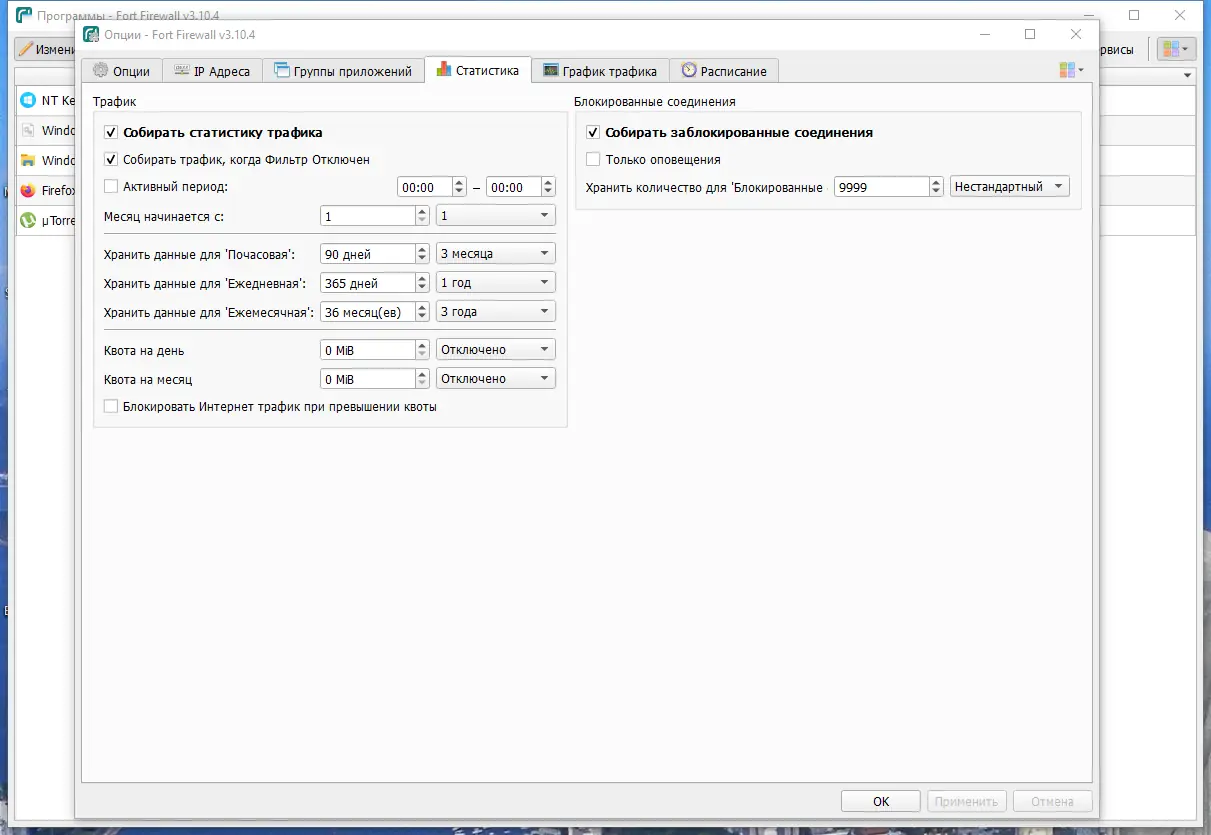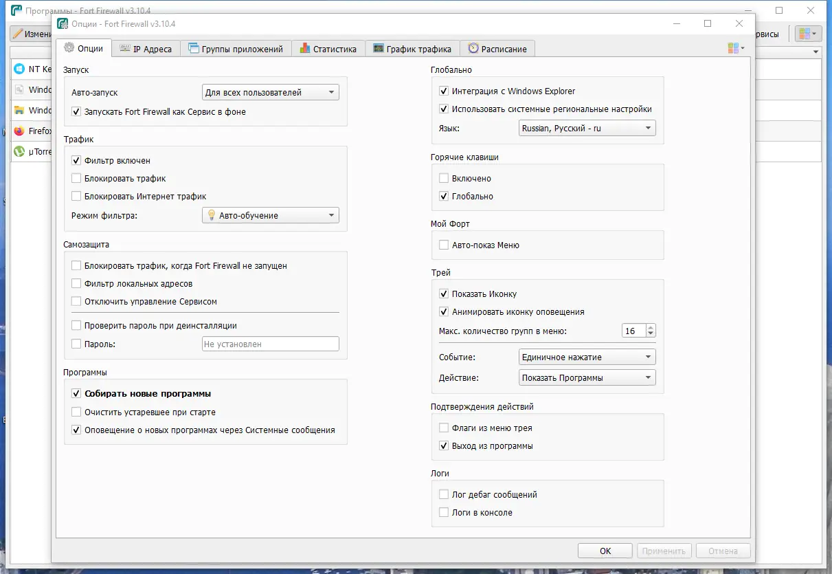 - Fort Firewall включает защиту от несанкционированного отключения — при завершении работы программы весь трафик блокируется.