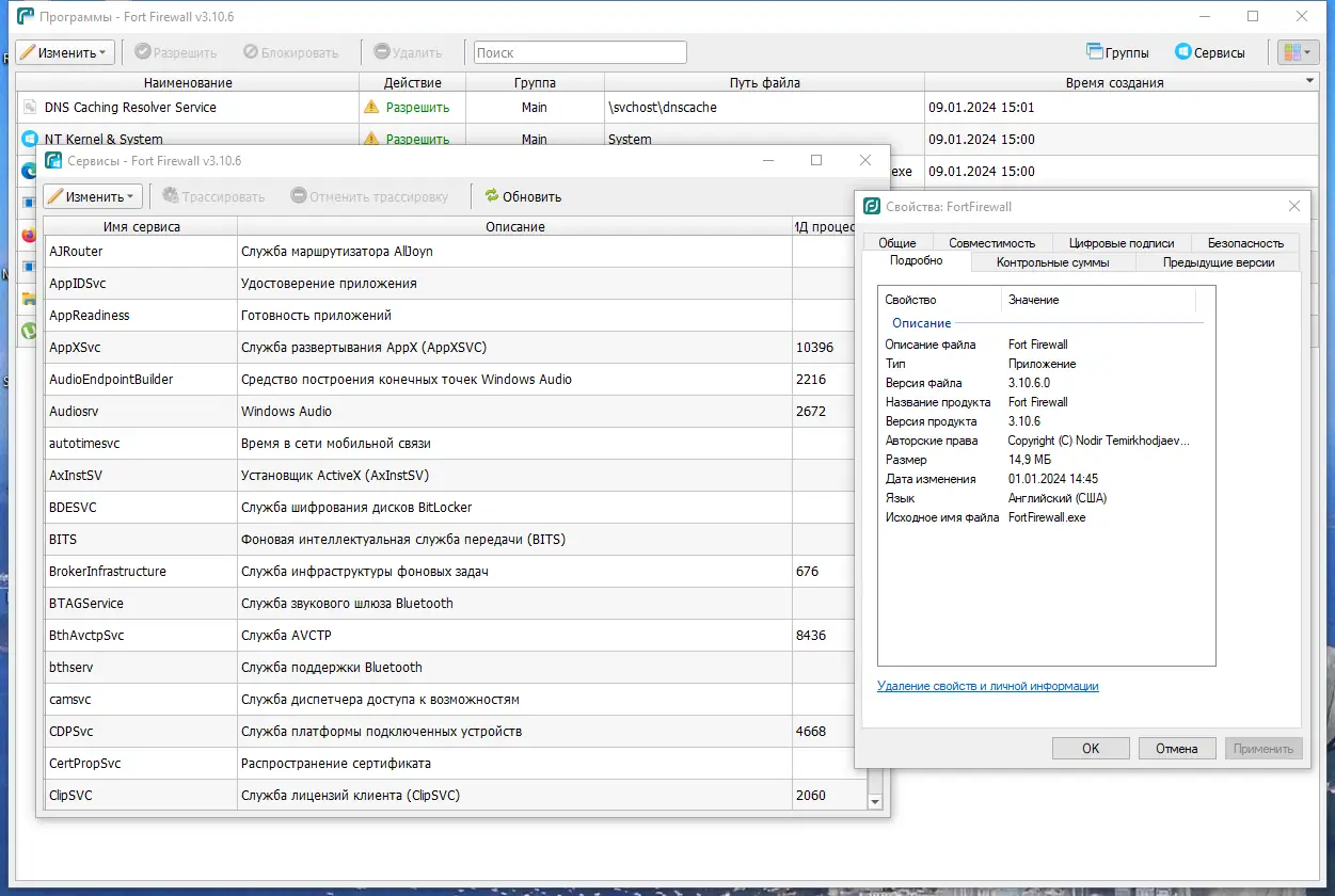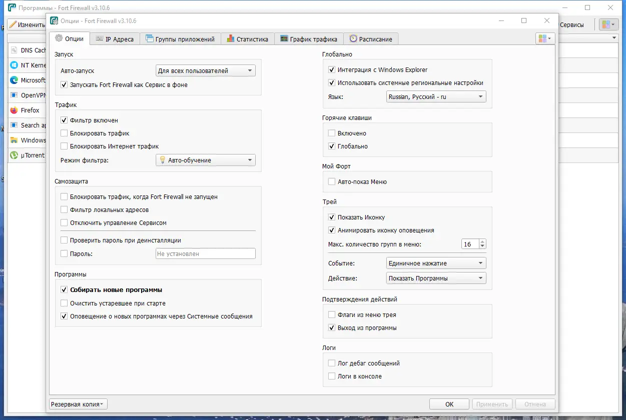 Fort Firewall сочетает простоту использования с мощными возможностями фильтрации, что делает его хорошим выбором для домашних и офисных ПК.