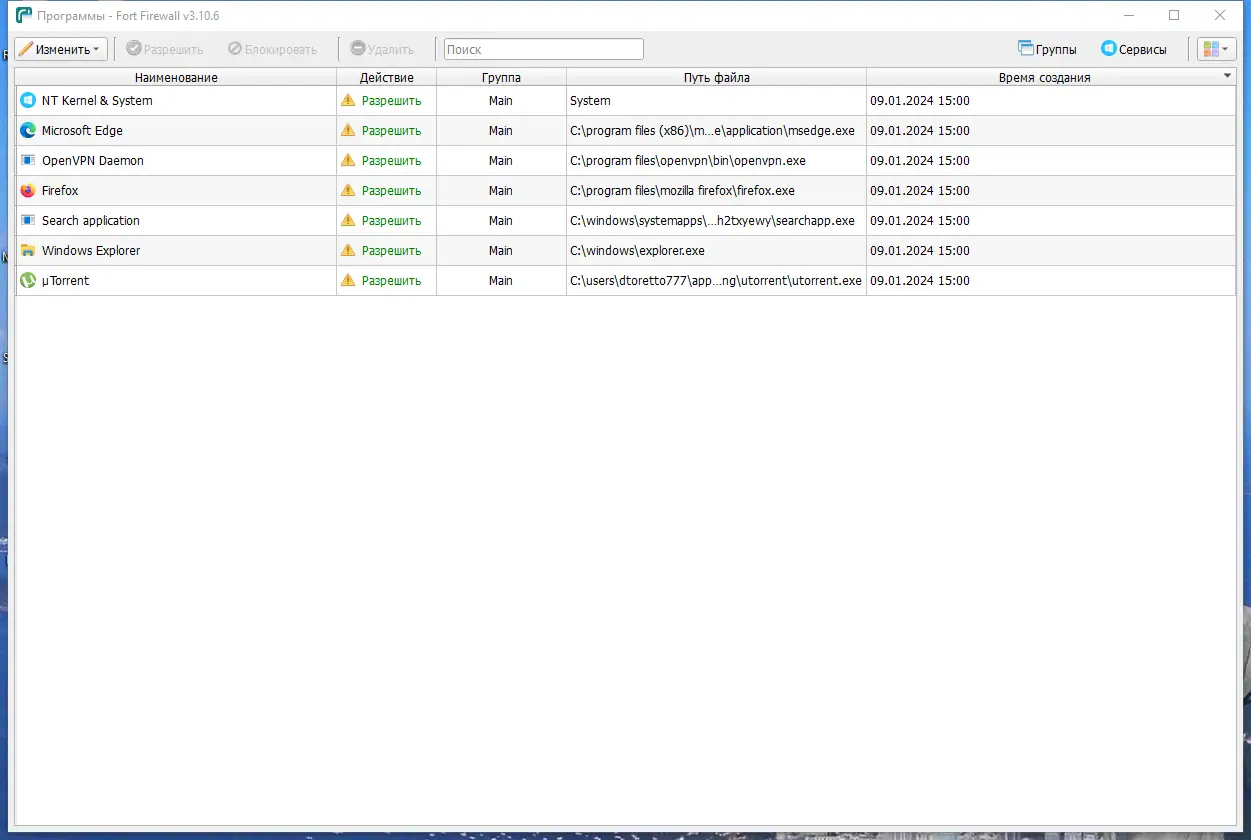 Работа с Fort Firewall