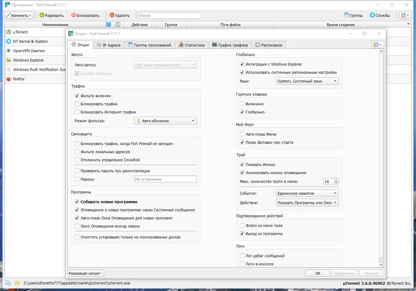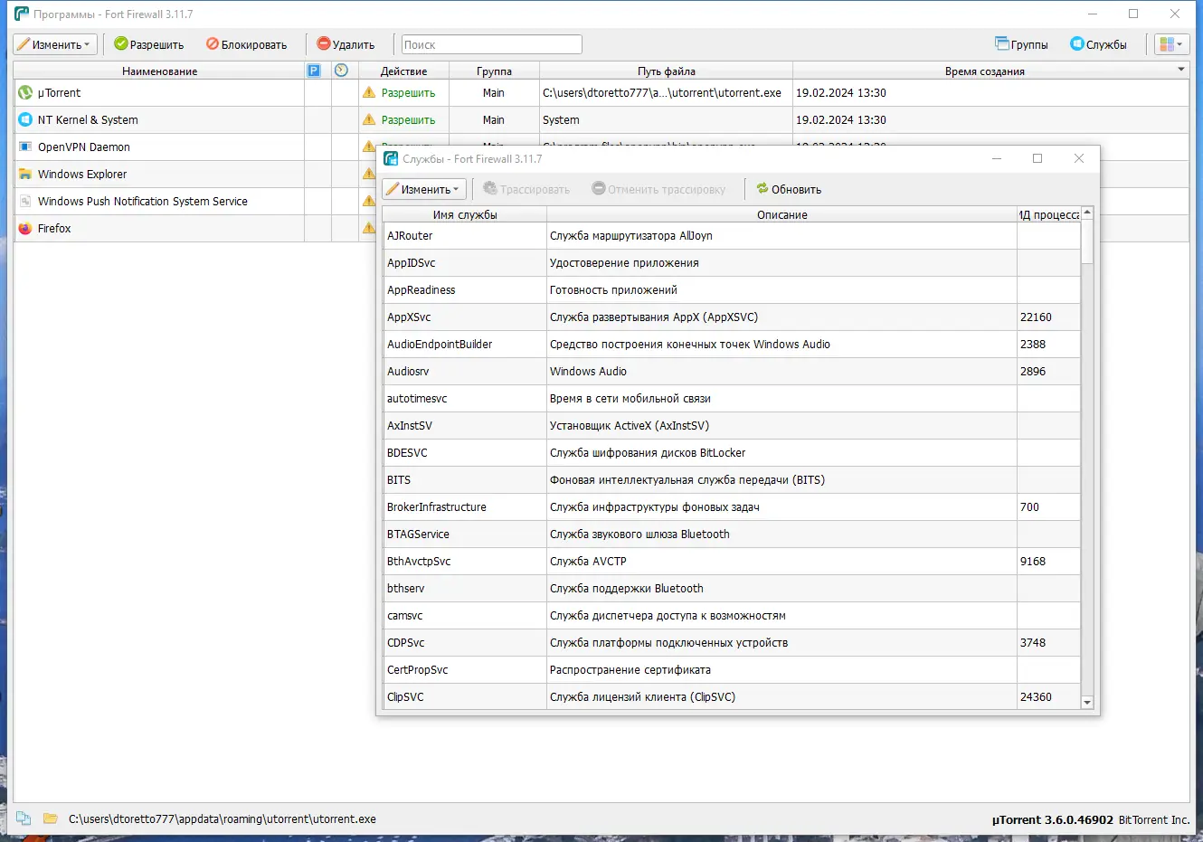 Работа с Fort Firewall